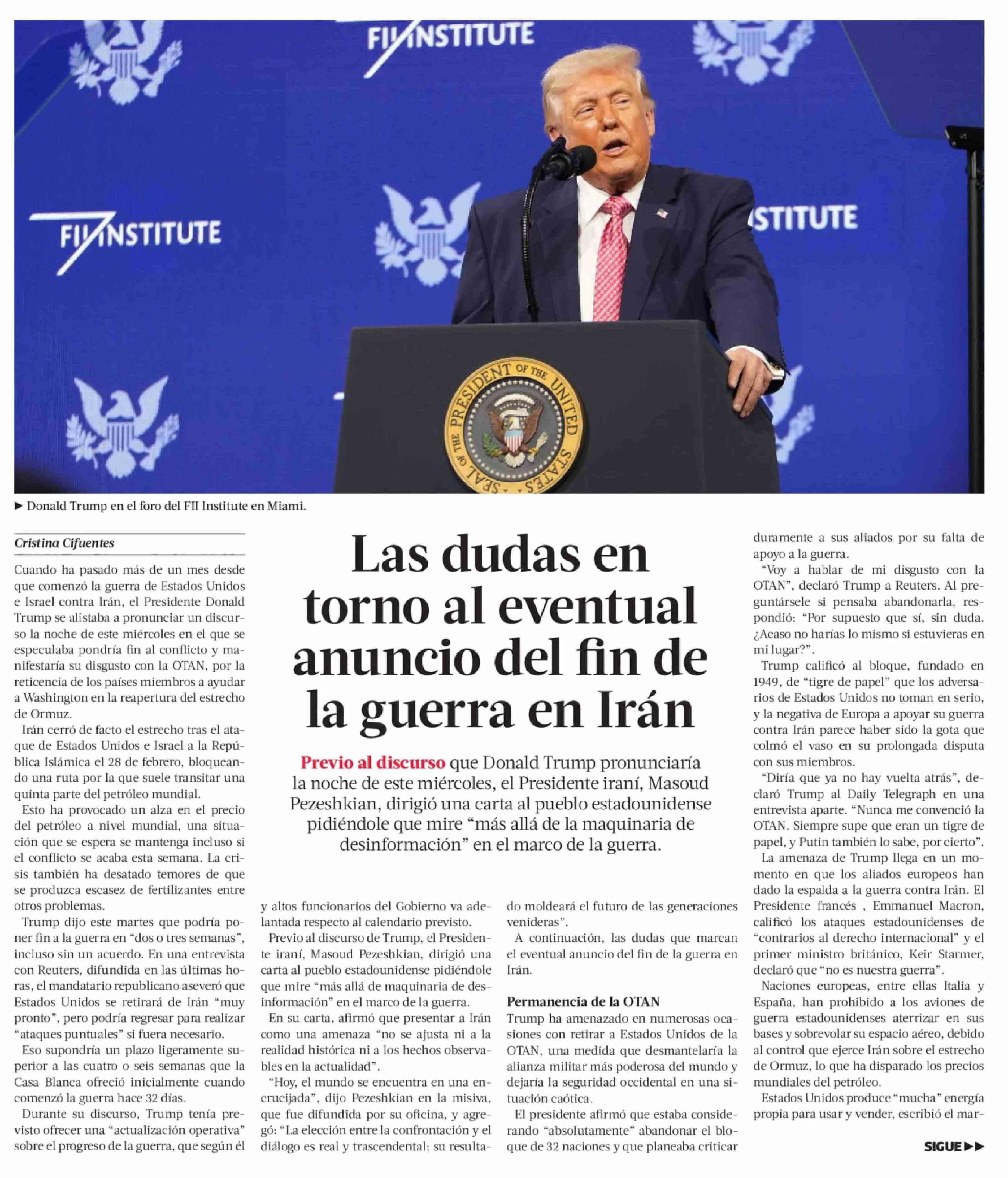 Título: Las dudas en torno al eventual anuncio del fin de la guerra en Irán
