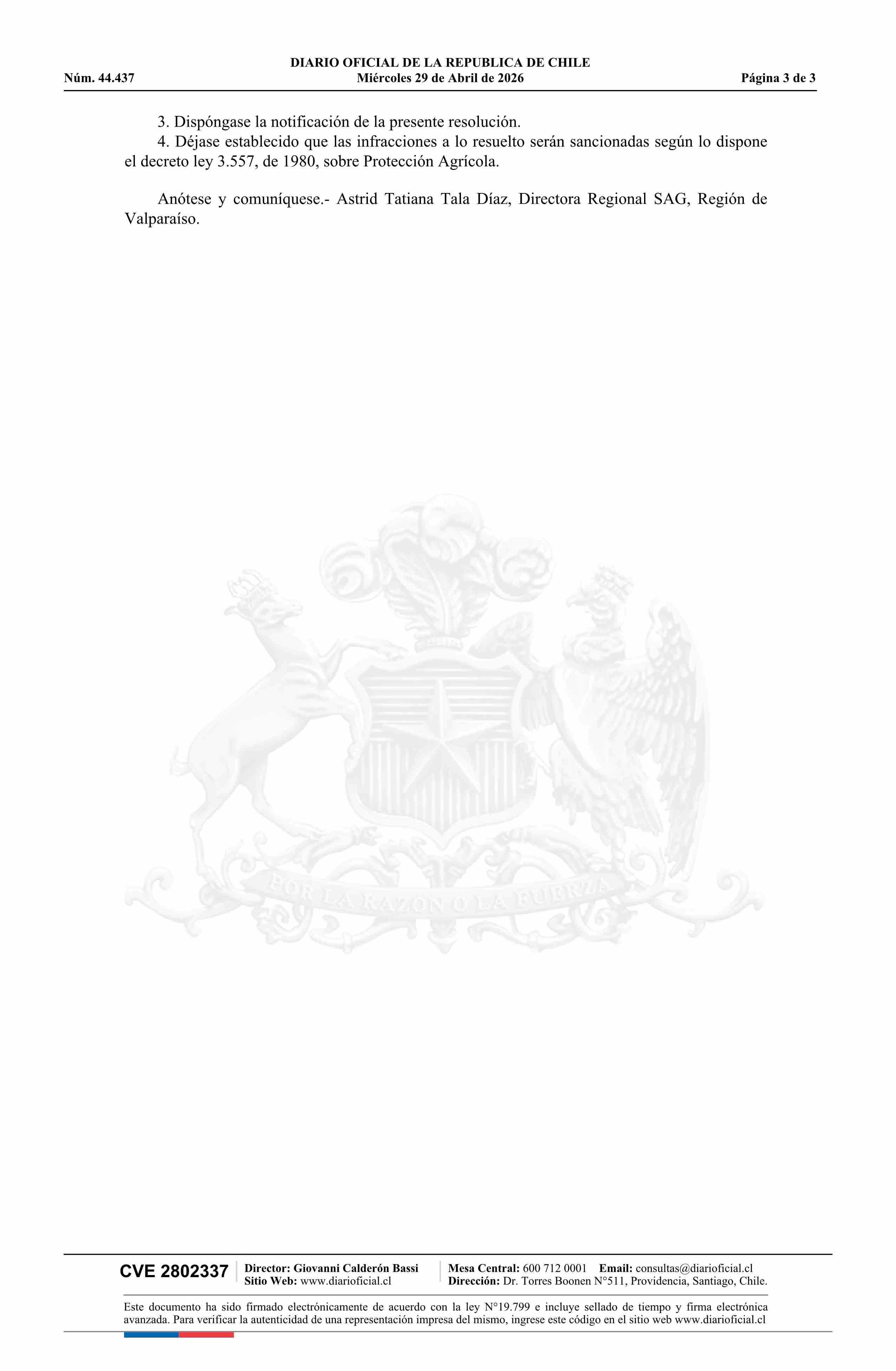 Resolución exenta número 841, de 2026.- Amplía área de regulaciones cuarentenarias para el control y erradicación de la Mosca del Mediterráneo (Ceratitis capitata W.), brote El Sauce, provincia de Los Andes, Región de Valparaíso, para el mercado de China