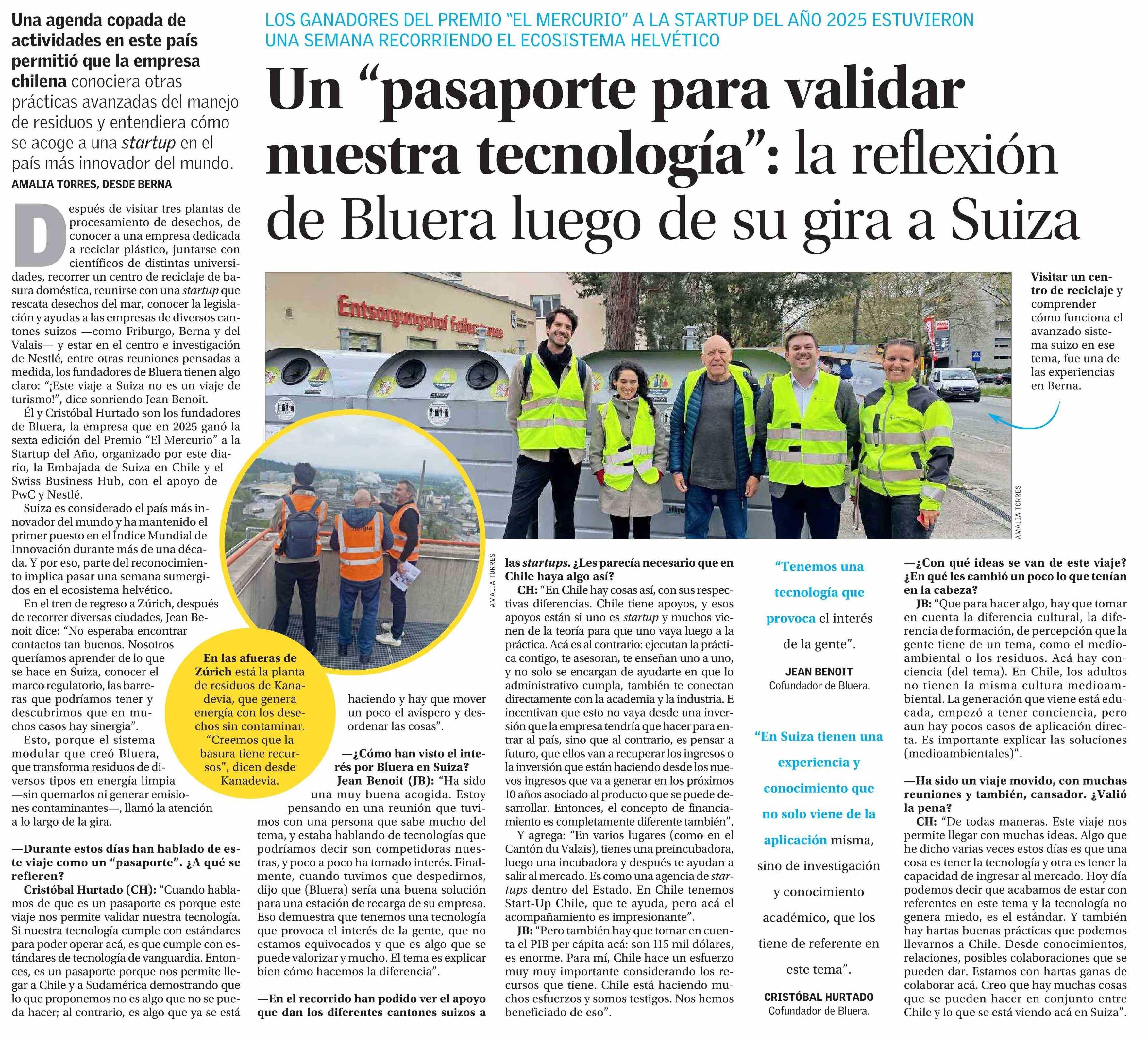 Título: Un “pasaporte para validar nuestra tecnología”: la reflexión de Bluera luego de su gira a Suiza