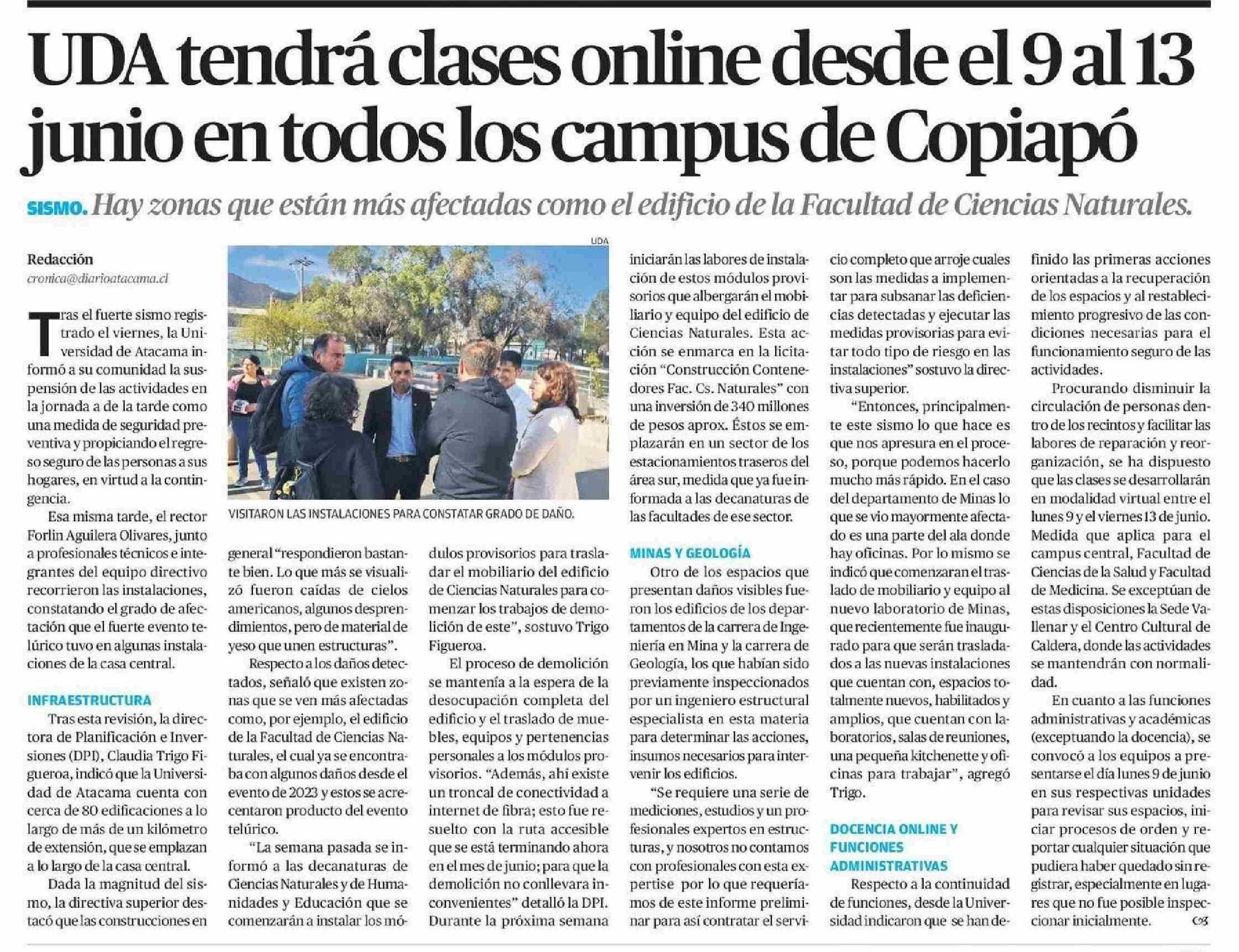 Título: UDA tendrá clases online desde el 9 al 13 junio en todos los campus de Copiapó