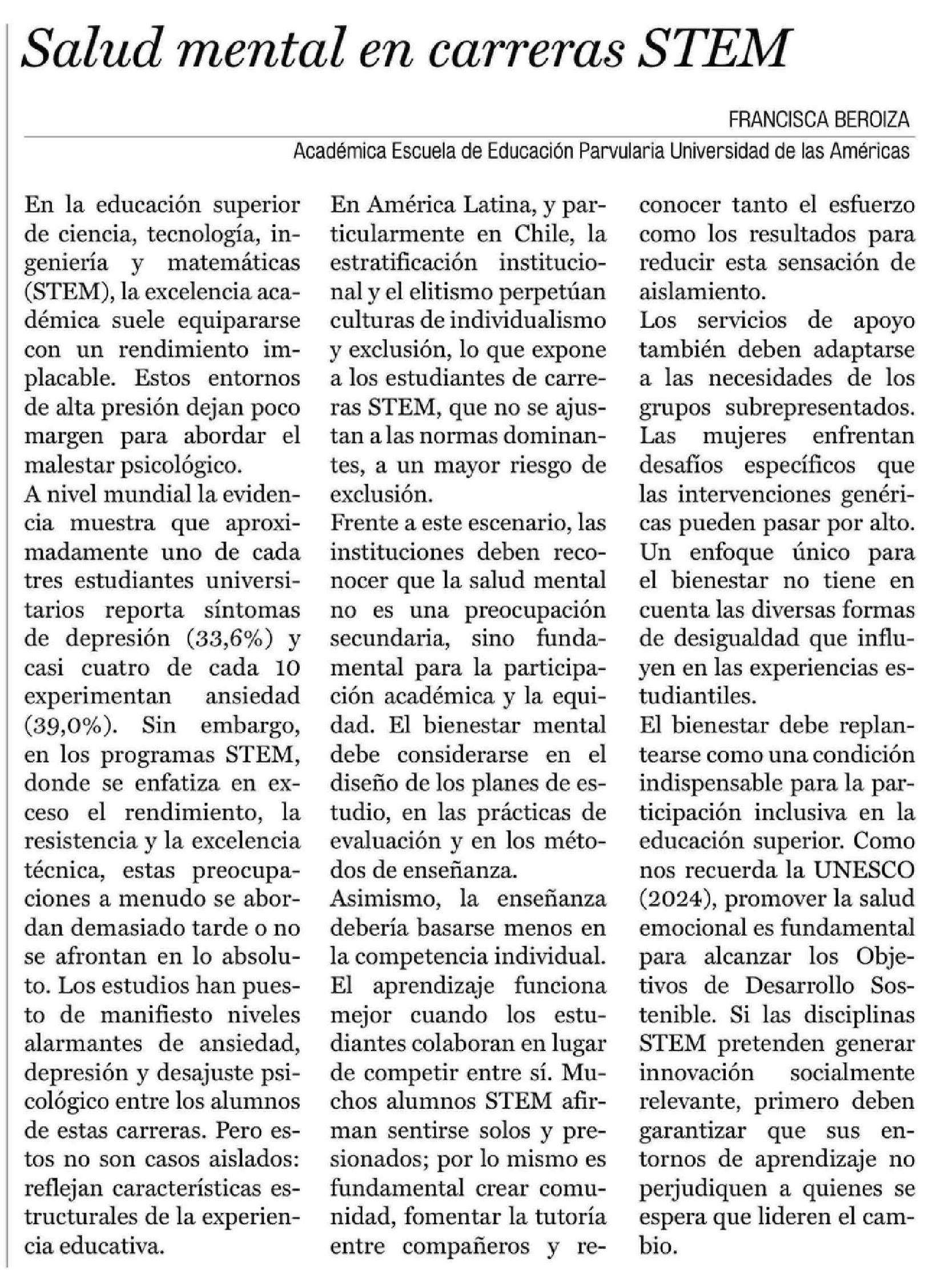 | Título: | Cartas: Salud mental en carreras STEM |