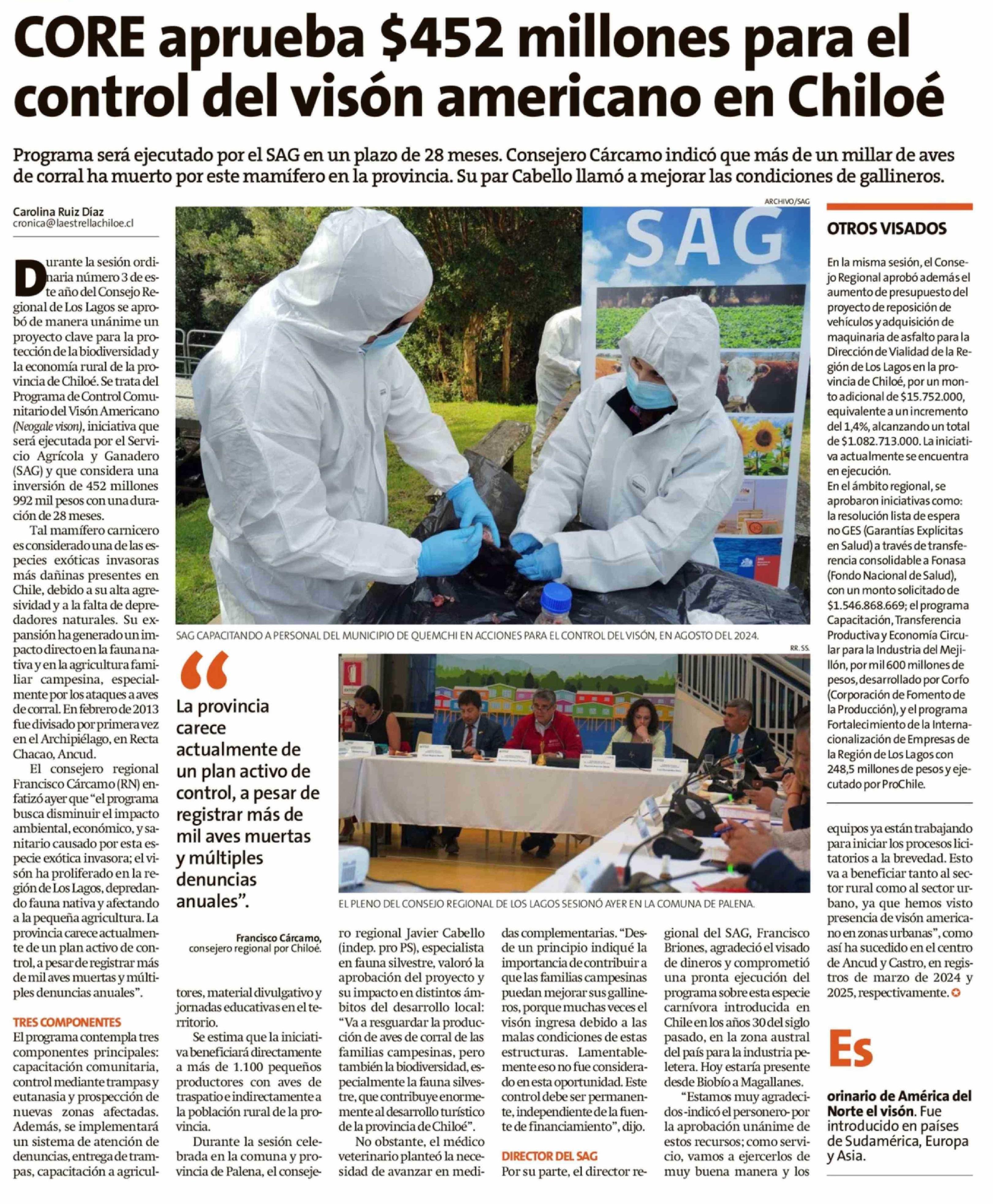 Título: CORE aprueba $452 millones para el control del visón americano en Chiloé