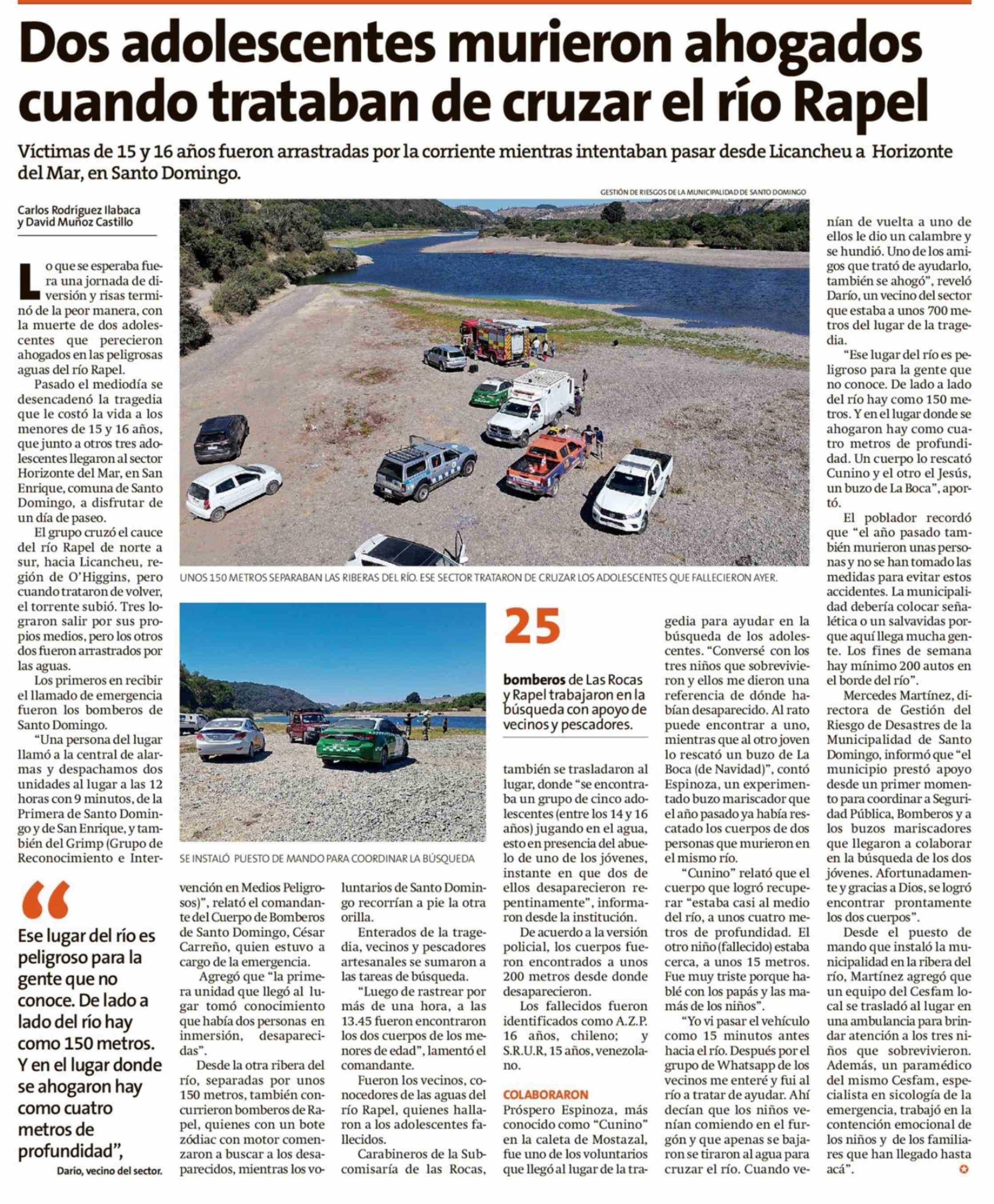 Título: Dos adolescentes murieron ahogados cuando trataban de cruzar el río Rapel