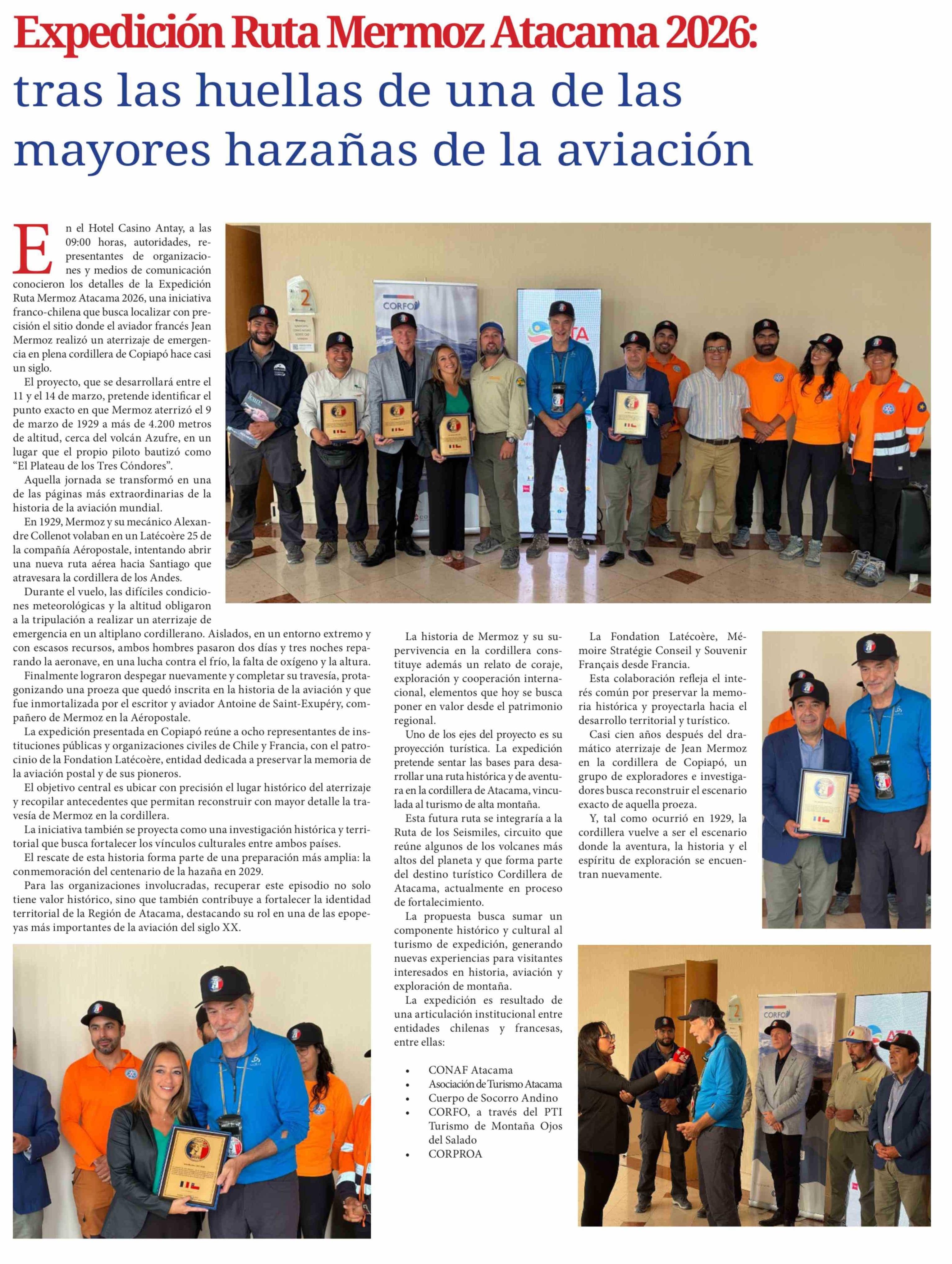 Título: Expedición Ruta Mermoz Atacama 2026: tras las huellas de una de las mayores hazañas de la aviación