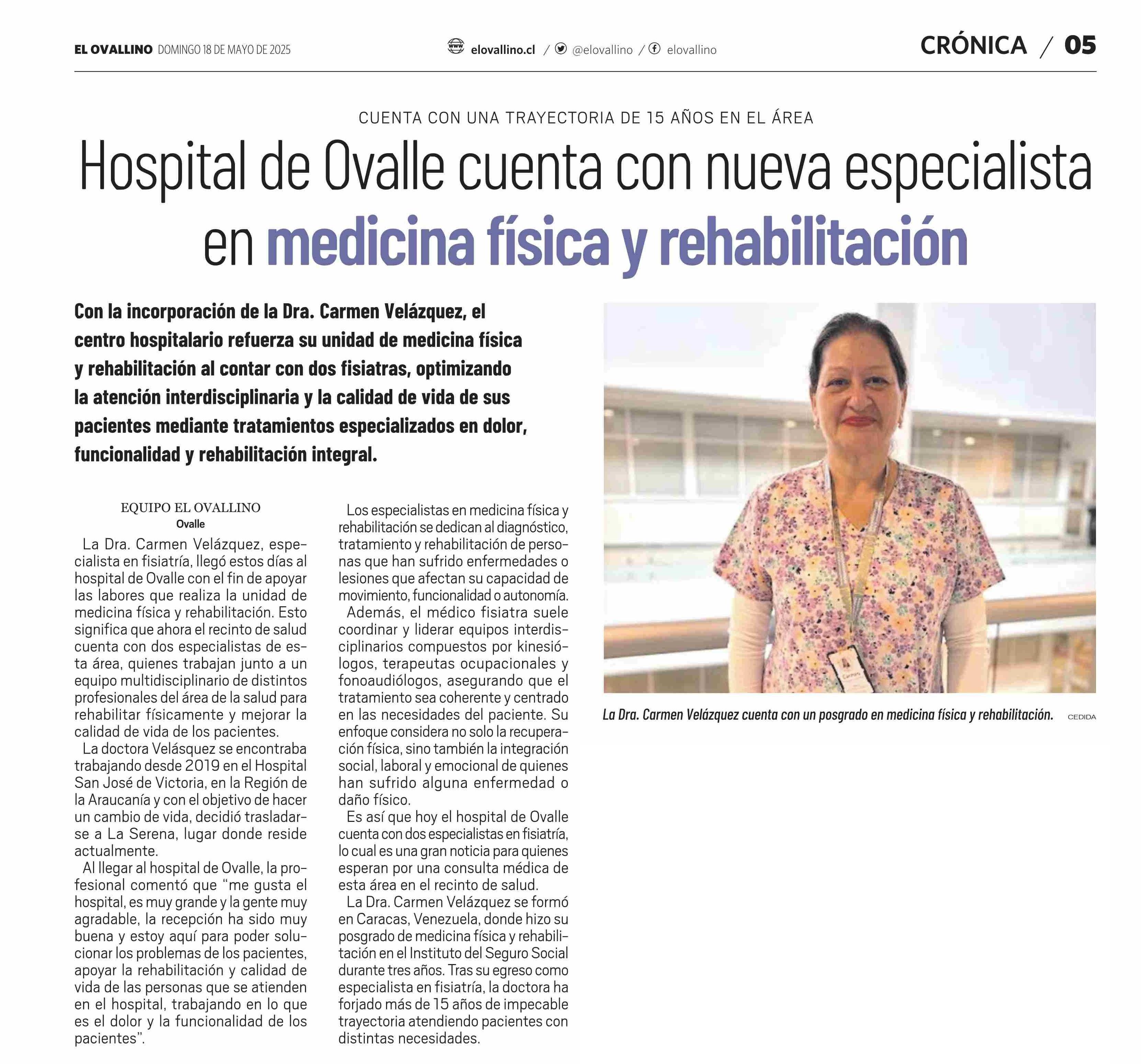 Hospital de Ovalle cuenta con nueva especialista en medicina física y rehabilitación 18-05-2025 El Ovallino |