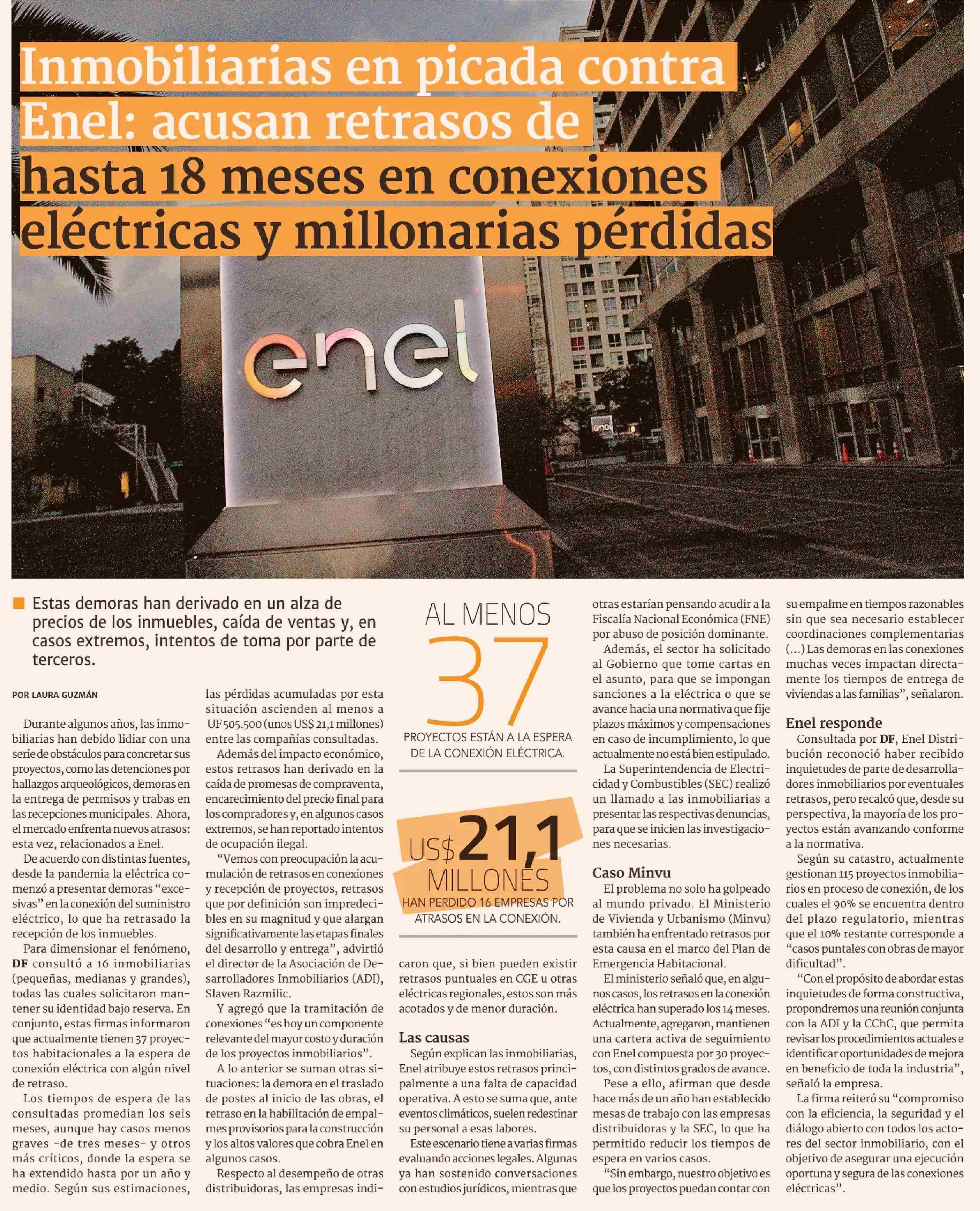 Inmobiliarias en picadaontra Enel: acusan retrasos de hasta 18 meses en conexiones eléctricas v millonarias pérdidas 09-06-2025 Diario Financiero |