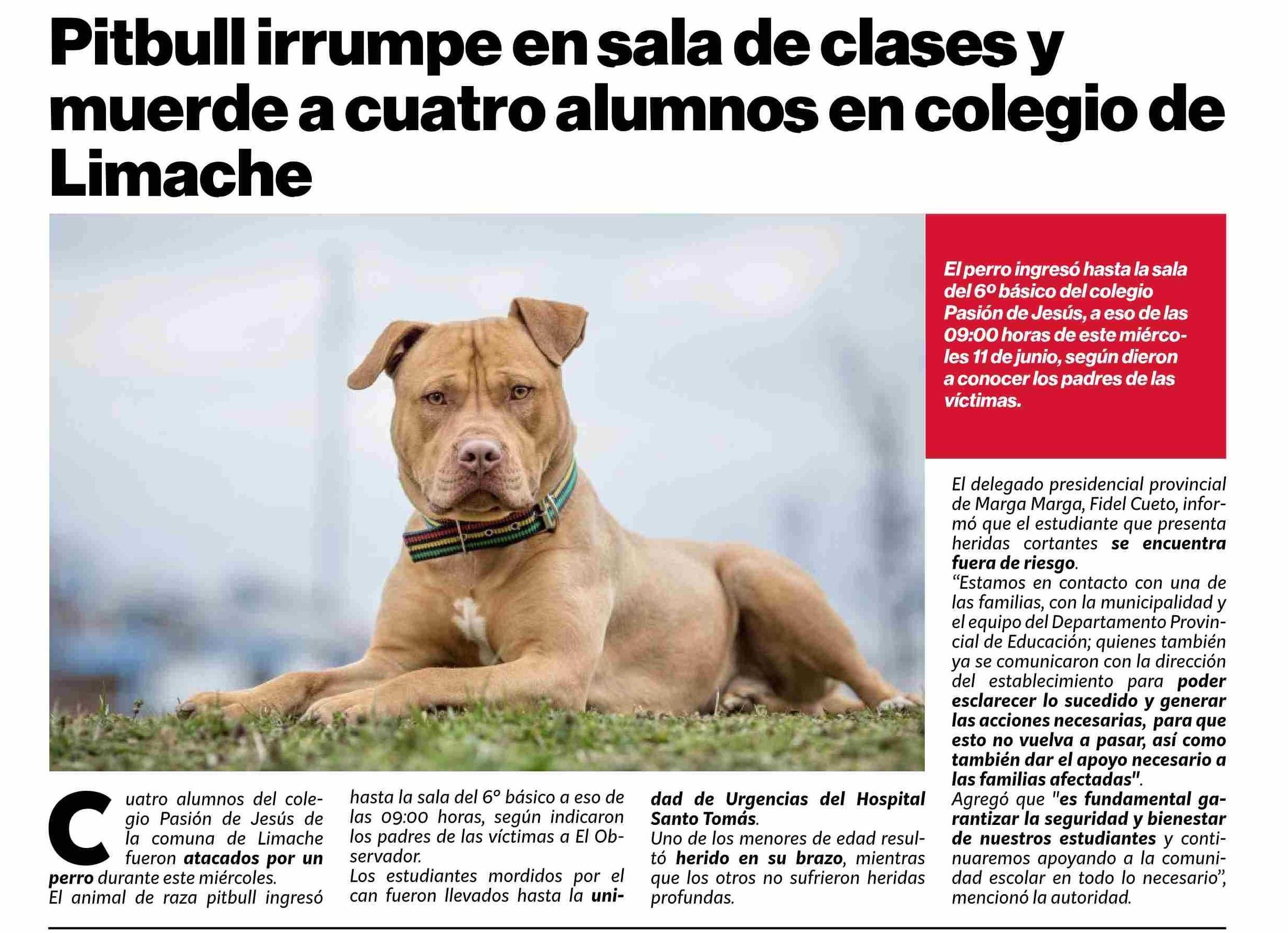 Pitbull irrumpe en sala de clases y muerde a cuatro alumnos en colegio de Limache 11-06-2025 Puranoticia.cl |