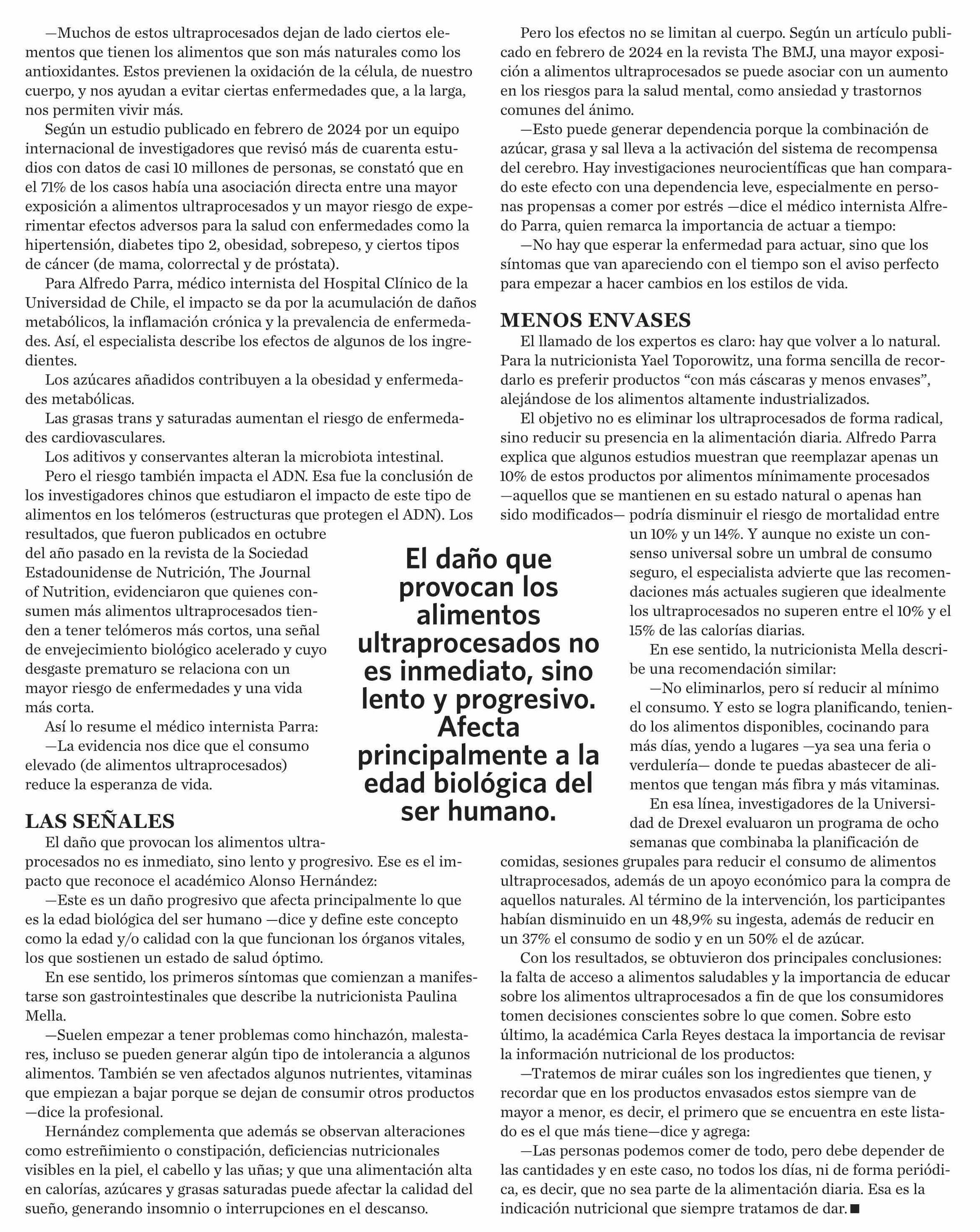 El costo silencioso de una alimentación ultraprocesada 20-05-2025 El Mercurio |