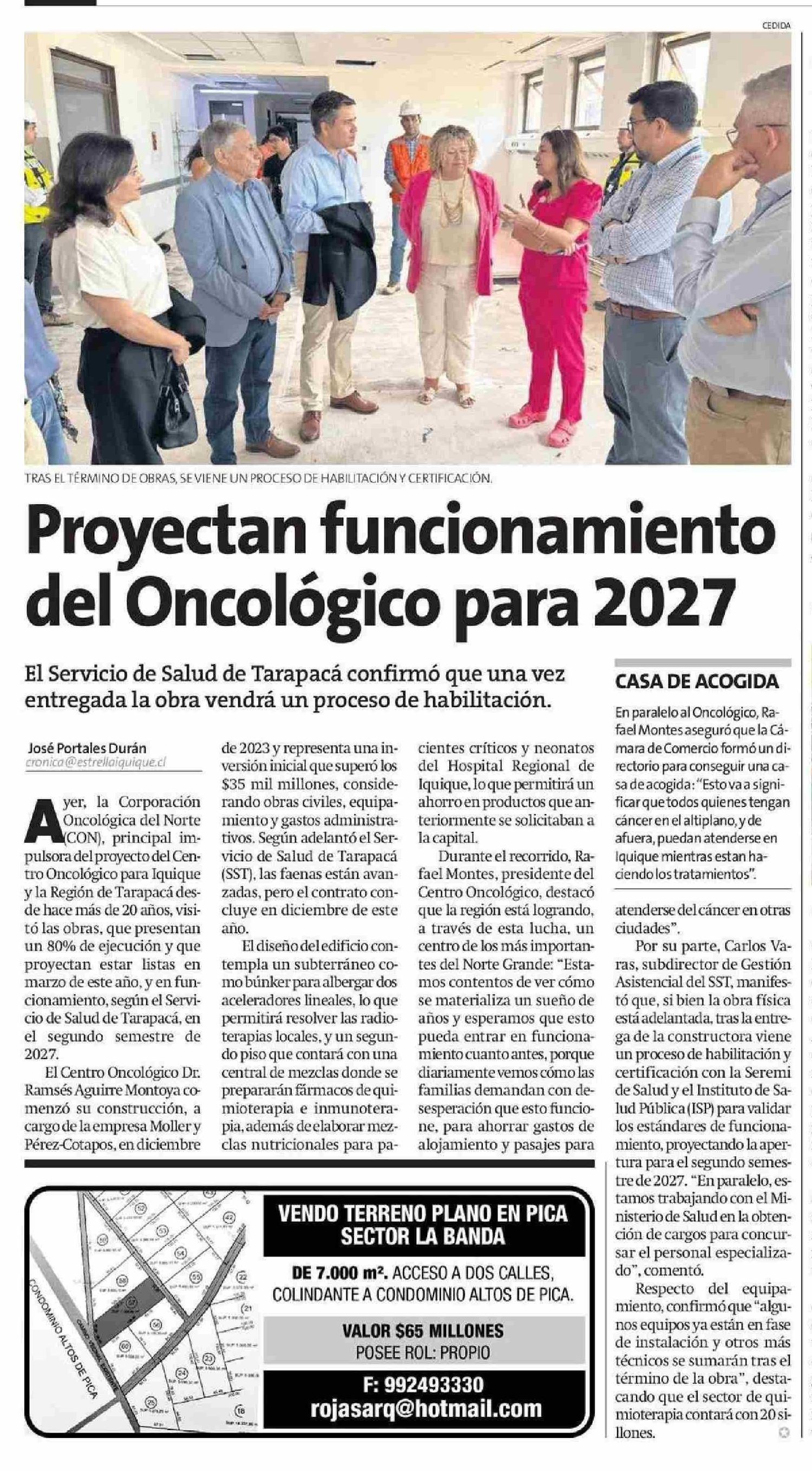 Proyectan funcionamiento del Oncológico para 2027 23-01-2026 La Estrella de Iquique |