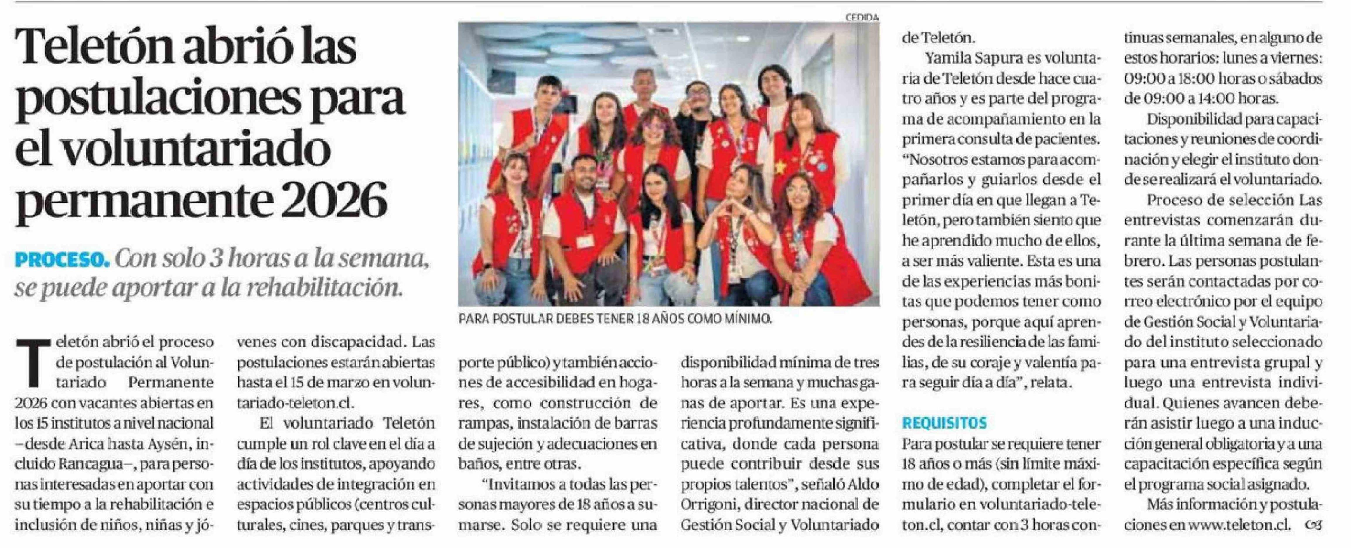 Teletón abrió las postulaciones para el voluntariado permanente 2026 03-02-2026 El Mercurio de Calama |