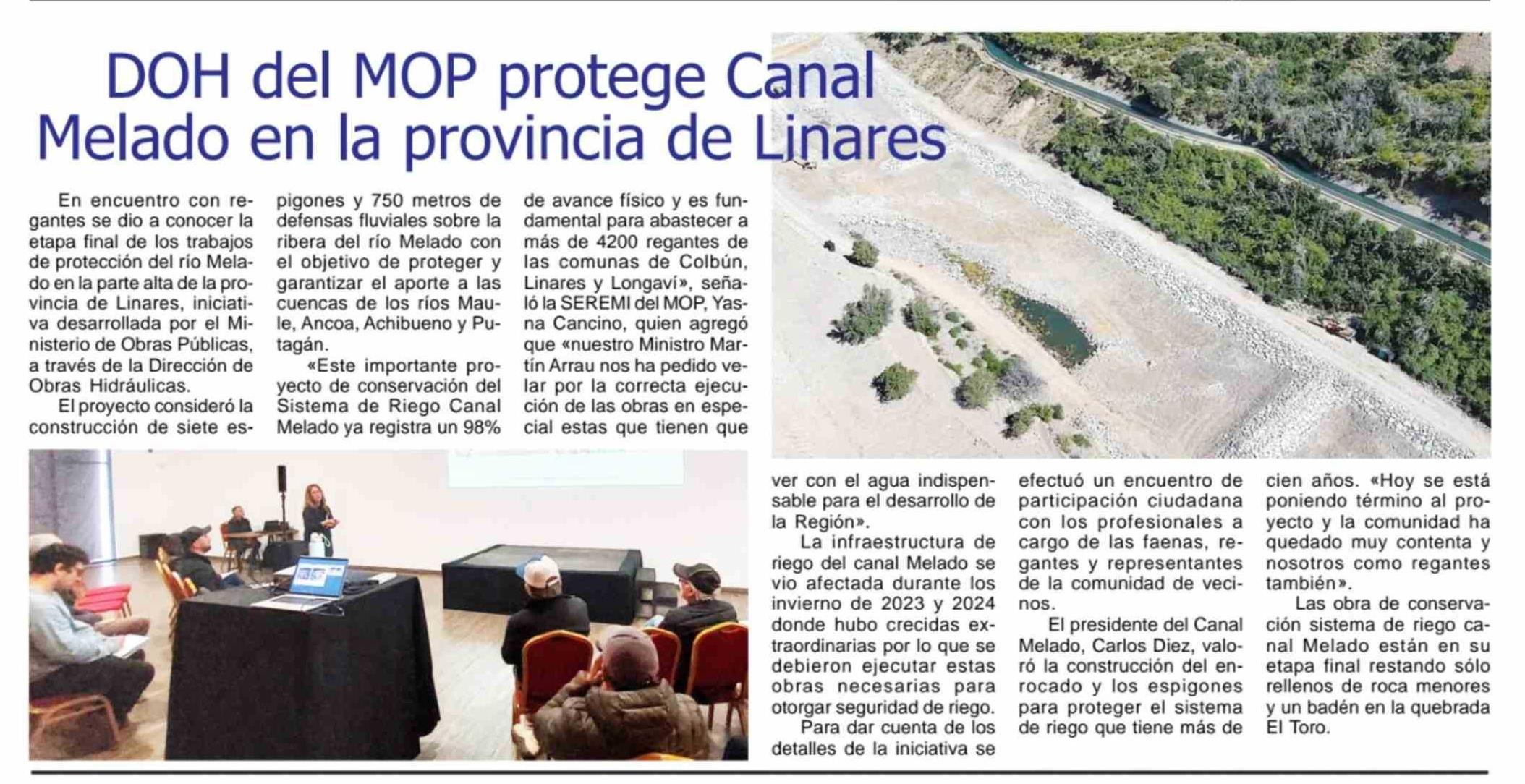 DOH del MOP protege Canal Melado en la provincia de Linares 19-04-2026 Maule Hoy |