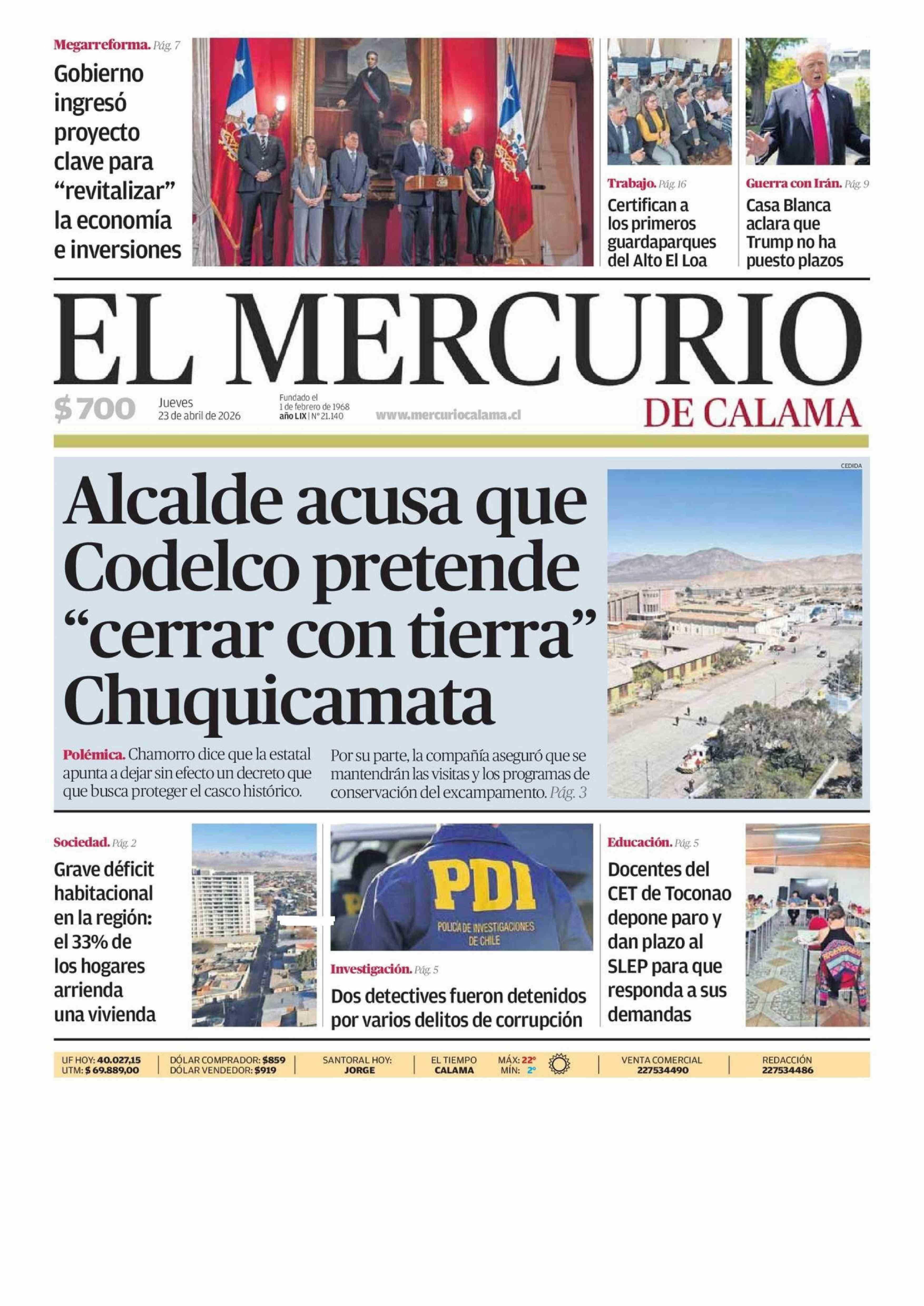 Fecha: 23-04-2026 Sector: Portada Región: Región de Antofagasta