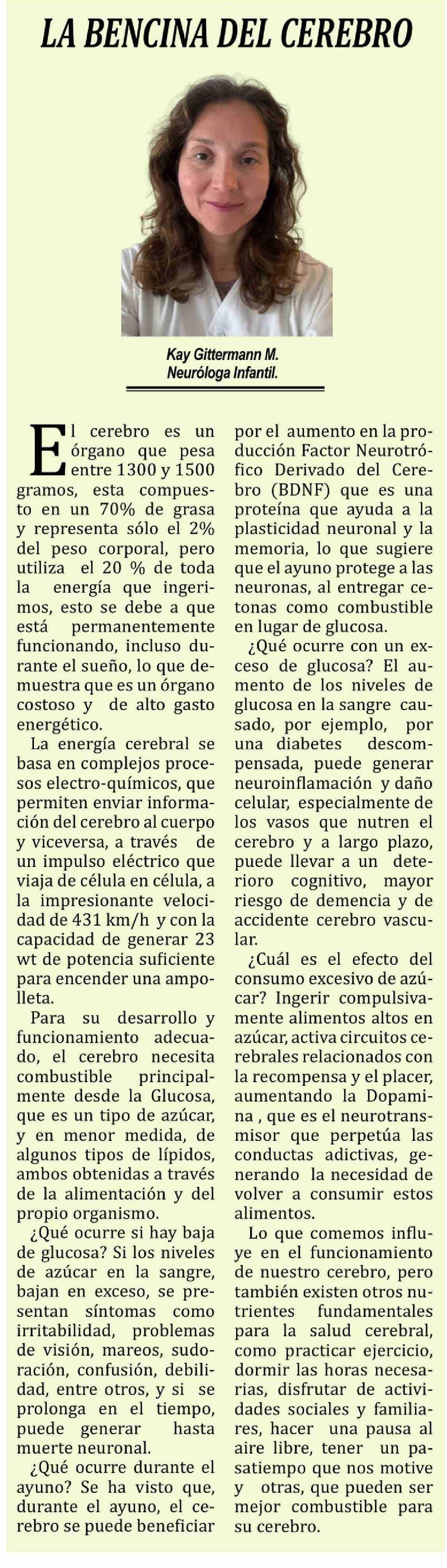 | Título: | Columnas de Opinión: LA BENCINA DEL CEREBRO |