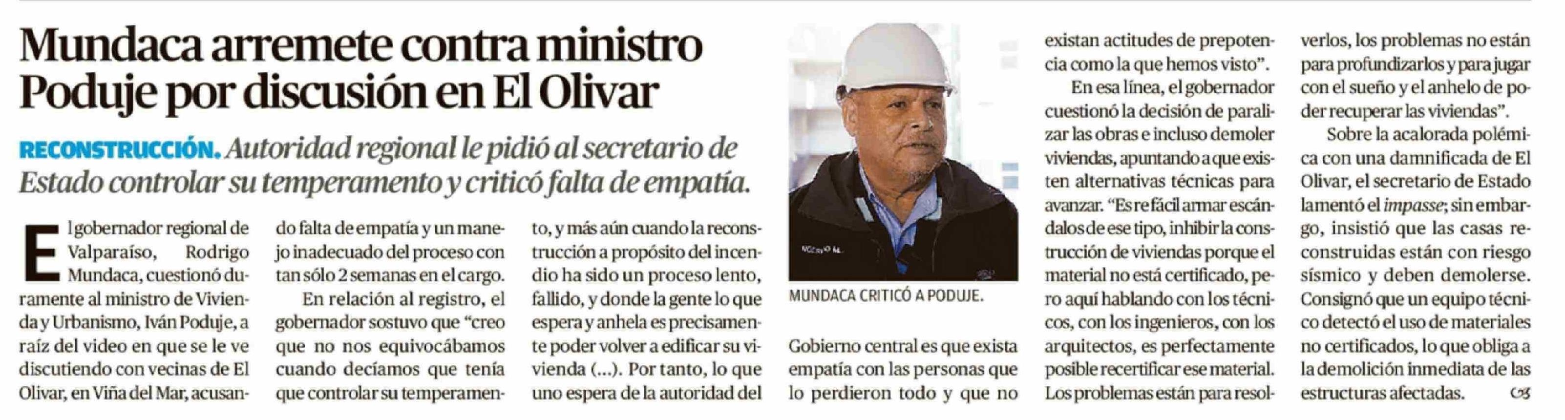 Título: Mundaca arremete contra ministro Poduje por discusión en El Olivar