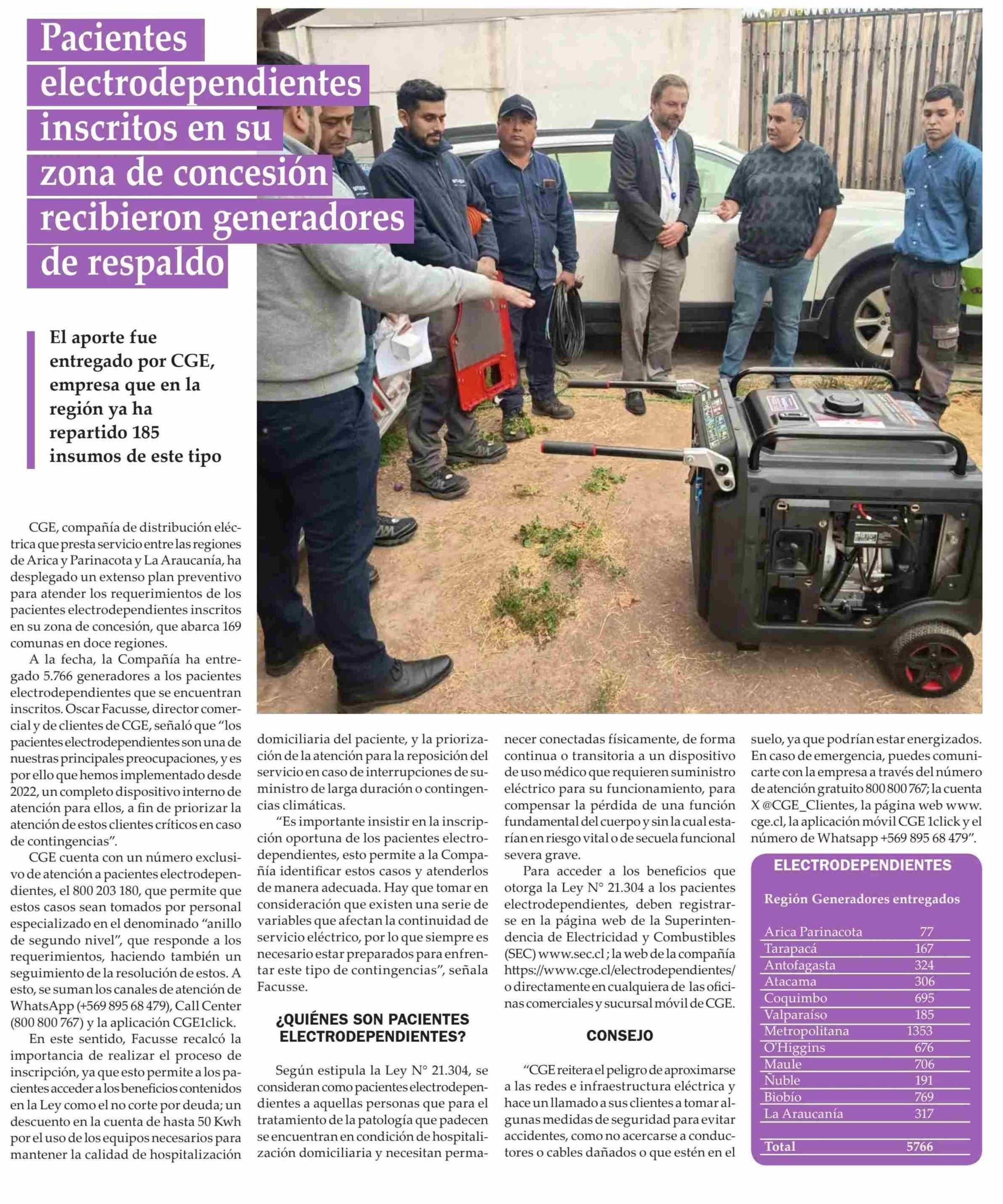 Pacientes electrodependientes inscritos en su zona de concesión recibieron generadores de respaldo 19-05-2025 El Observador Vespertino |