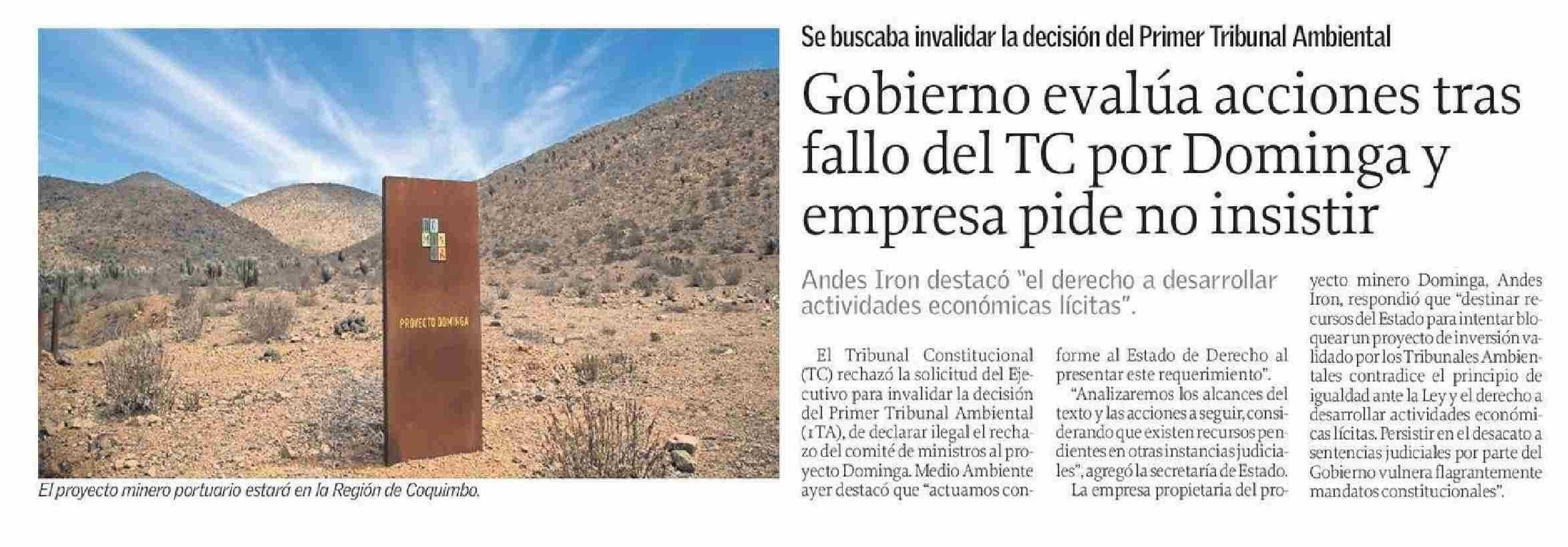 Gobierno evalúa acciones tras fallo del TC por Dominga y empresa pide no insistir 13-06-2025 El Sur |