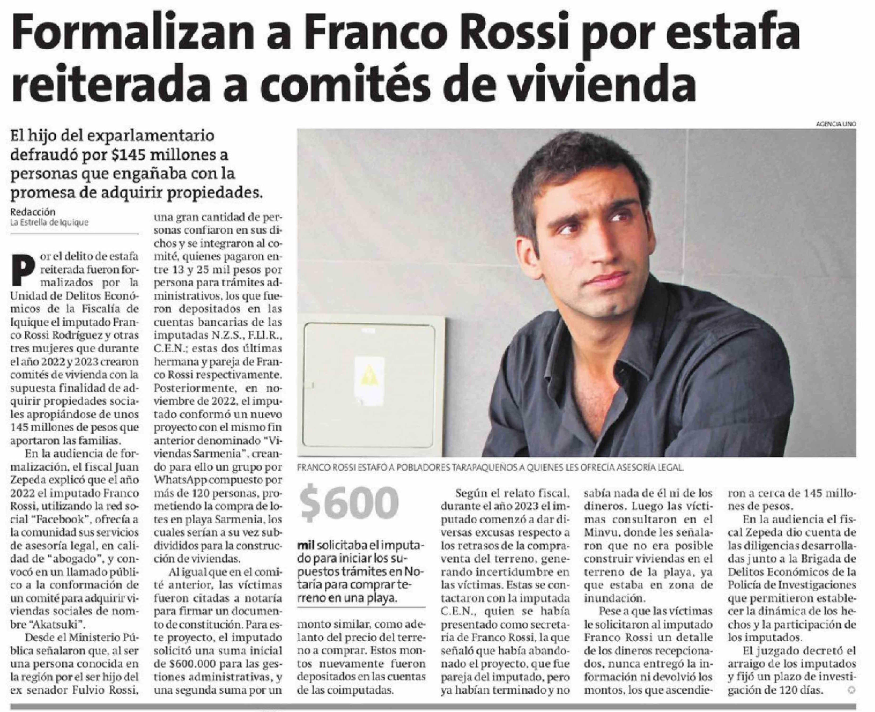 Formalizan a Franco Rossi por estafa reiterada a comités de vivienda 04-02-2026 La Estrella de Iquique |