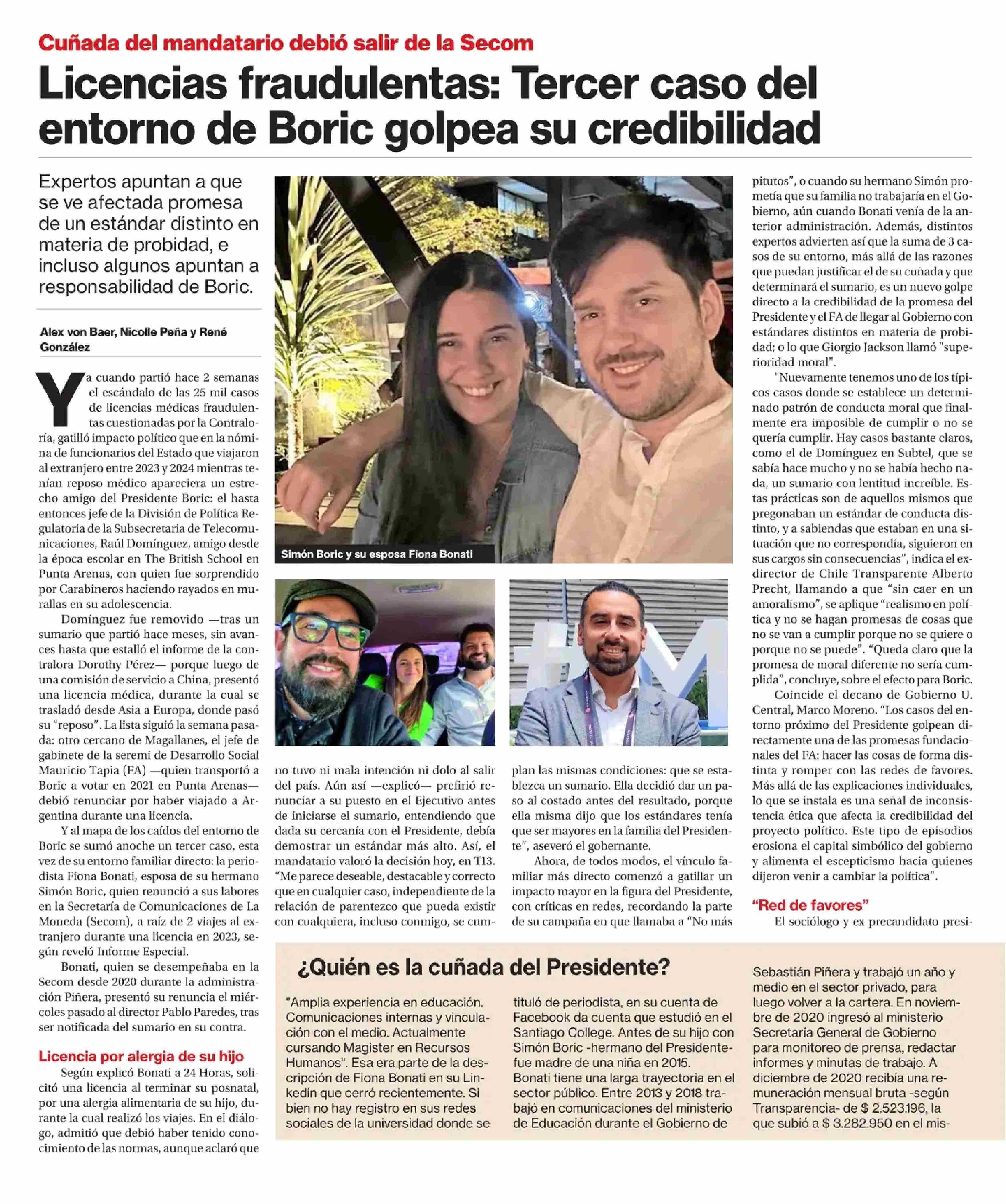 | Título: | Licencias fraudulentas: Tercer caso del entorno de Boric golpea su credibilidad |