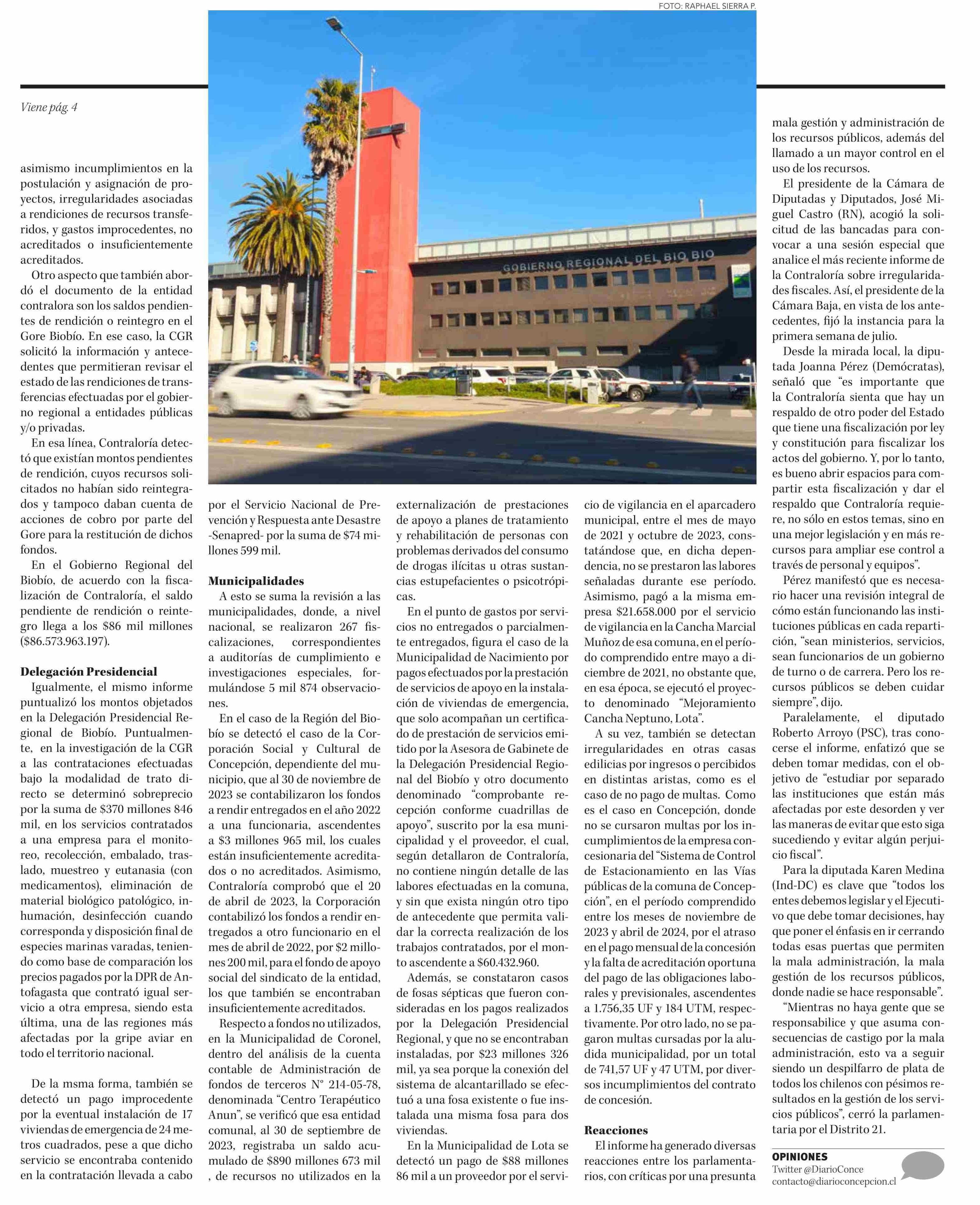| Título: | Irregularidades detectadas por Contraloría: organismos en Biobío registran más de $94 mil millones |
