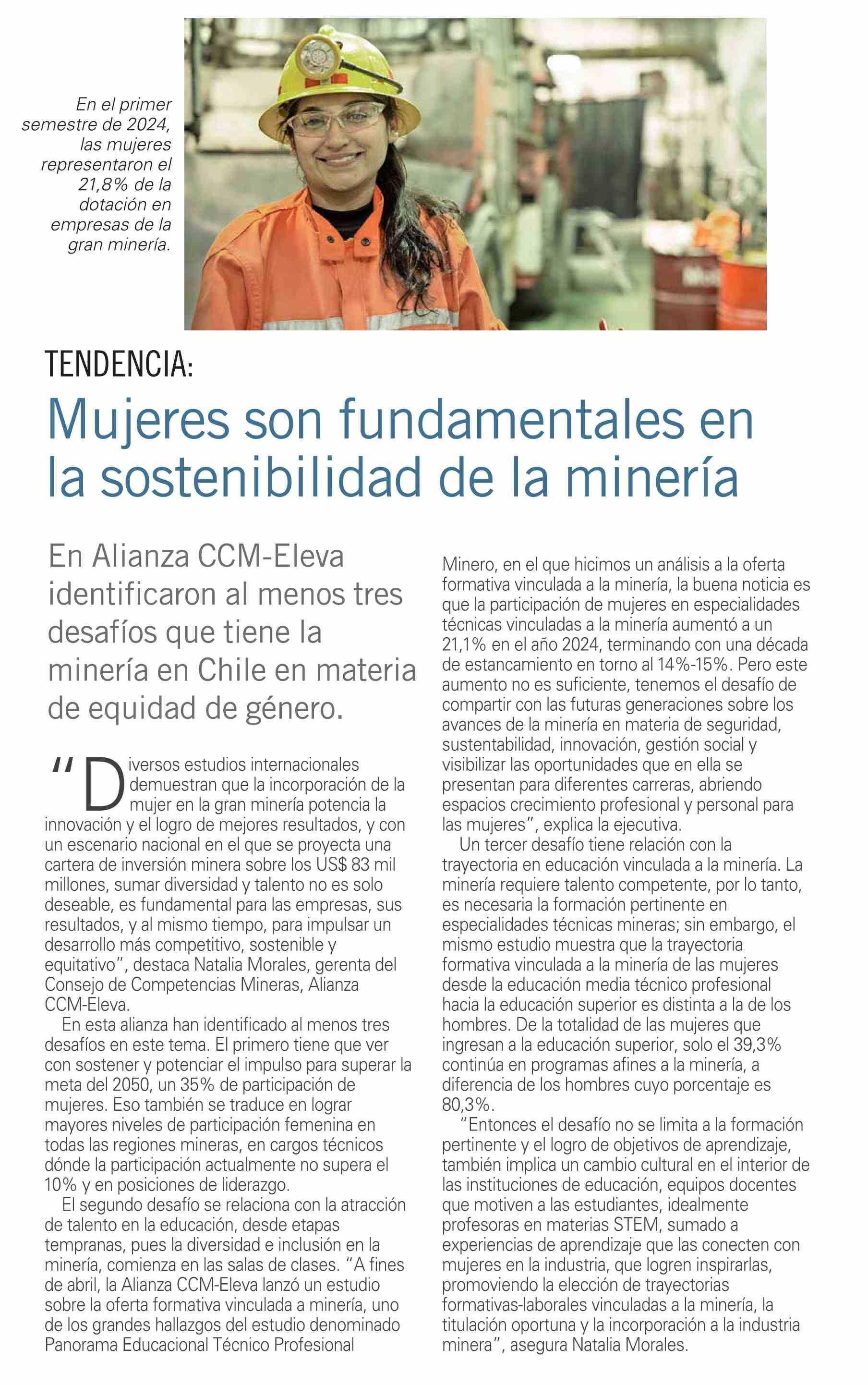 Mujeres son fundamentales en la sostenibilidad de la minería 22-05-2025 El Mercurio |