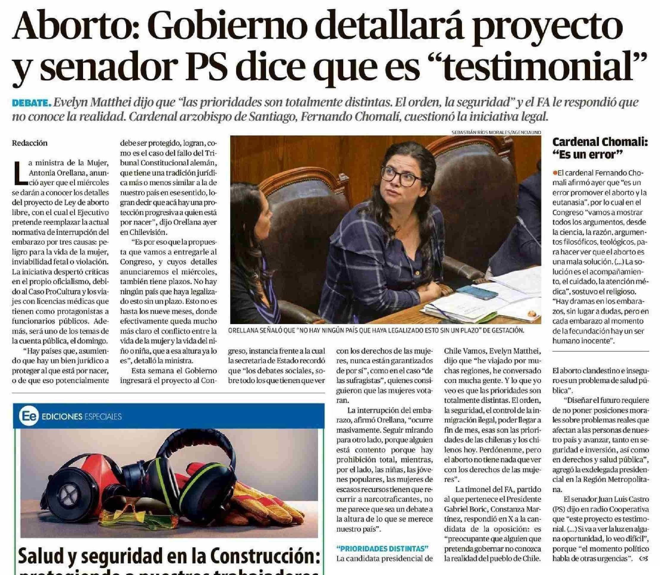Aborto: Gobierno detallará proyecto y senador PS dice que es “testimonial” 26-05-2025 El Llanquihue |