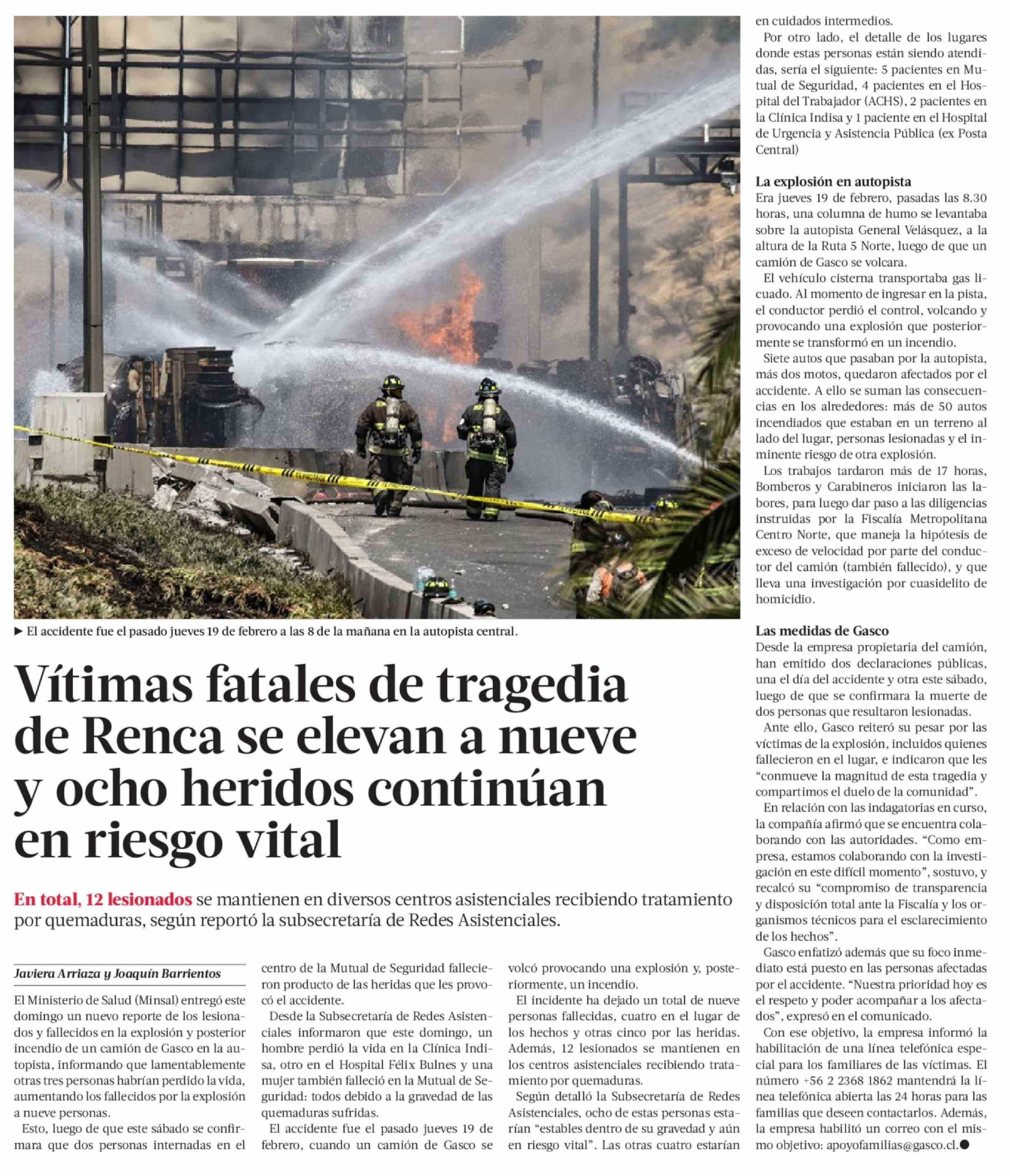 Título: Vítimas fatales de tragedia de Renca se elevan a nueve y ocho heridos continúan en riesgo vital
