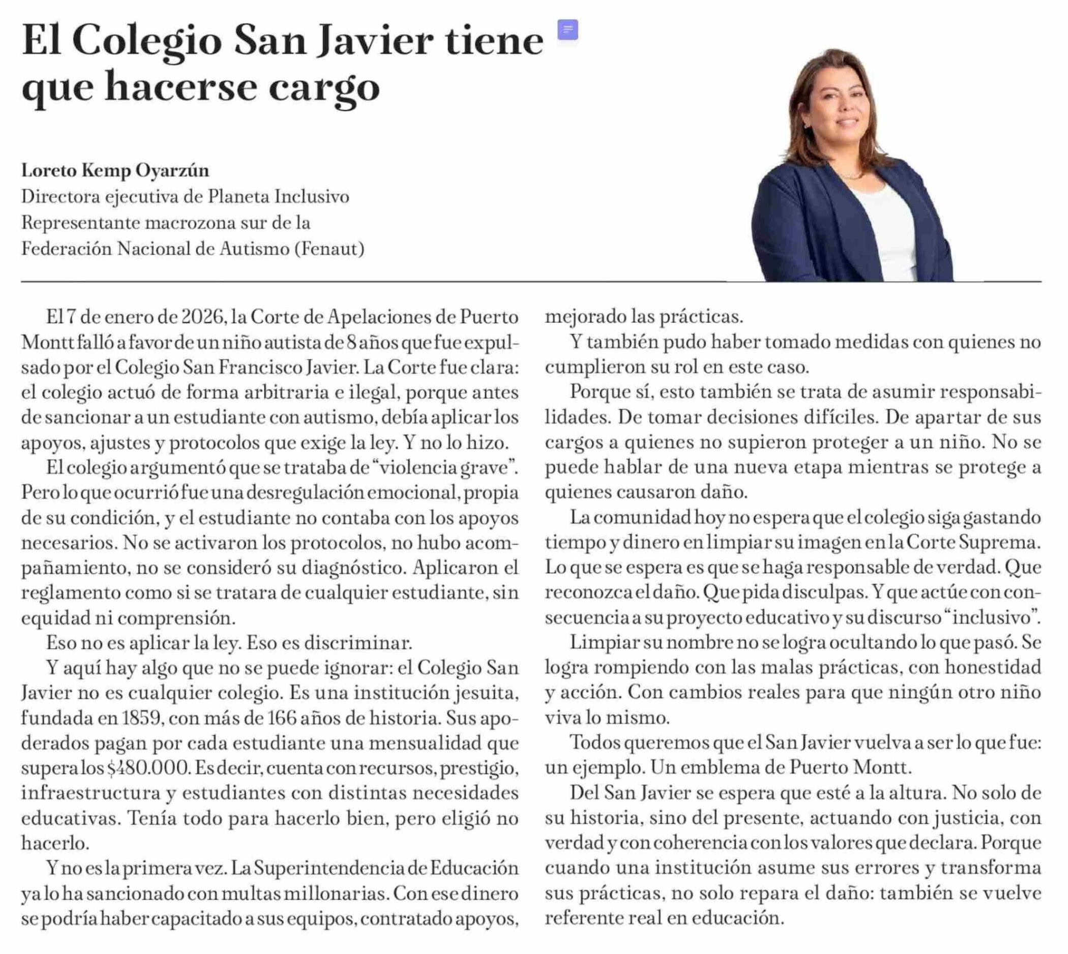 El Colegio San Javier tiene que hacerse cargo 14-01-2026 La Tribuna |