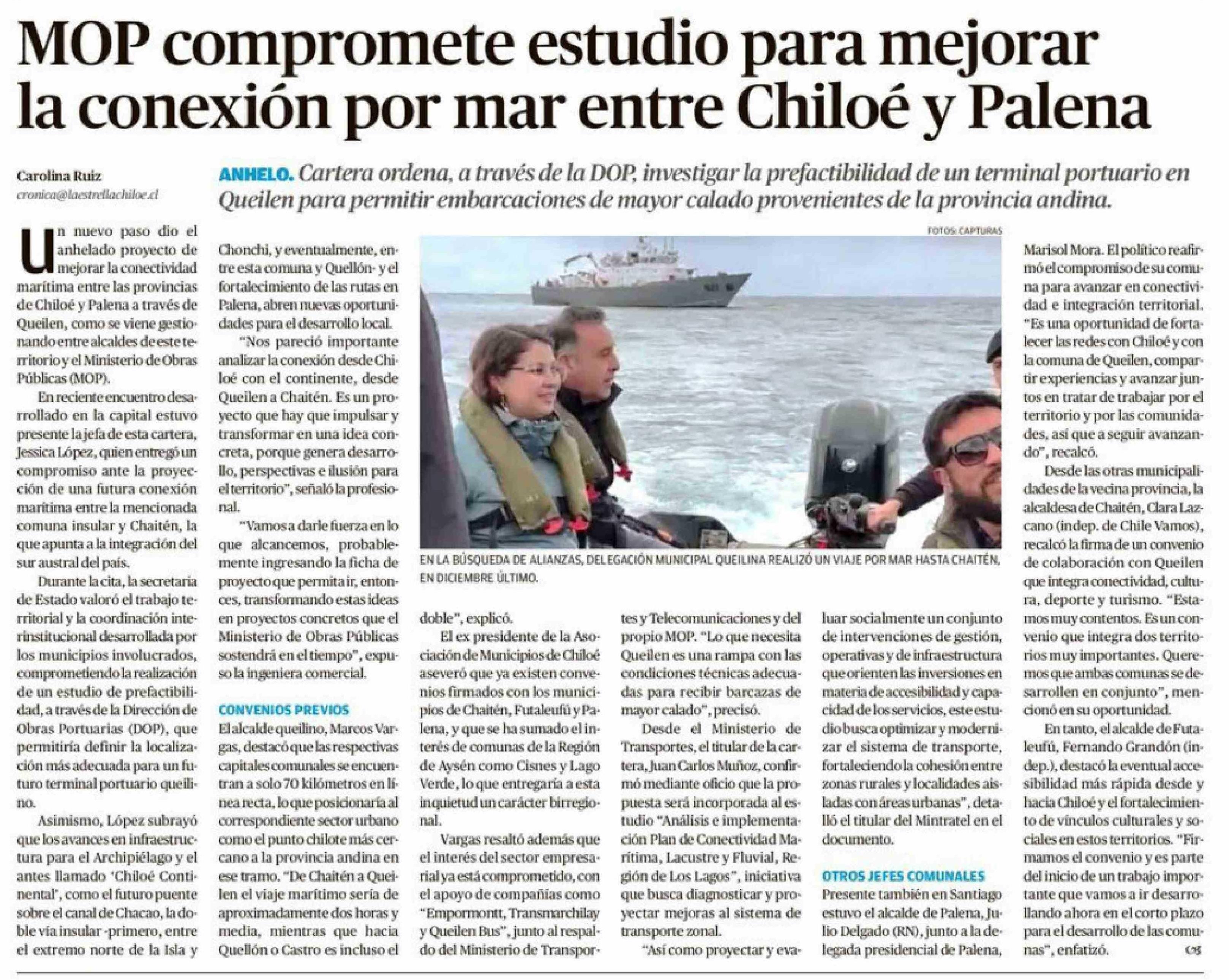 MOP compromete estudio para mejorar la conexión por mar entre Chiloé y Palena 04-02-2026 El Llanquihue |