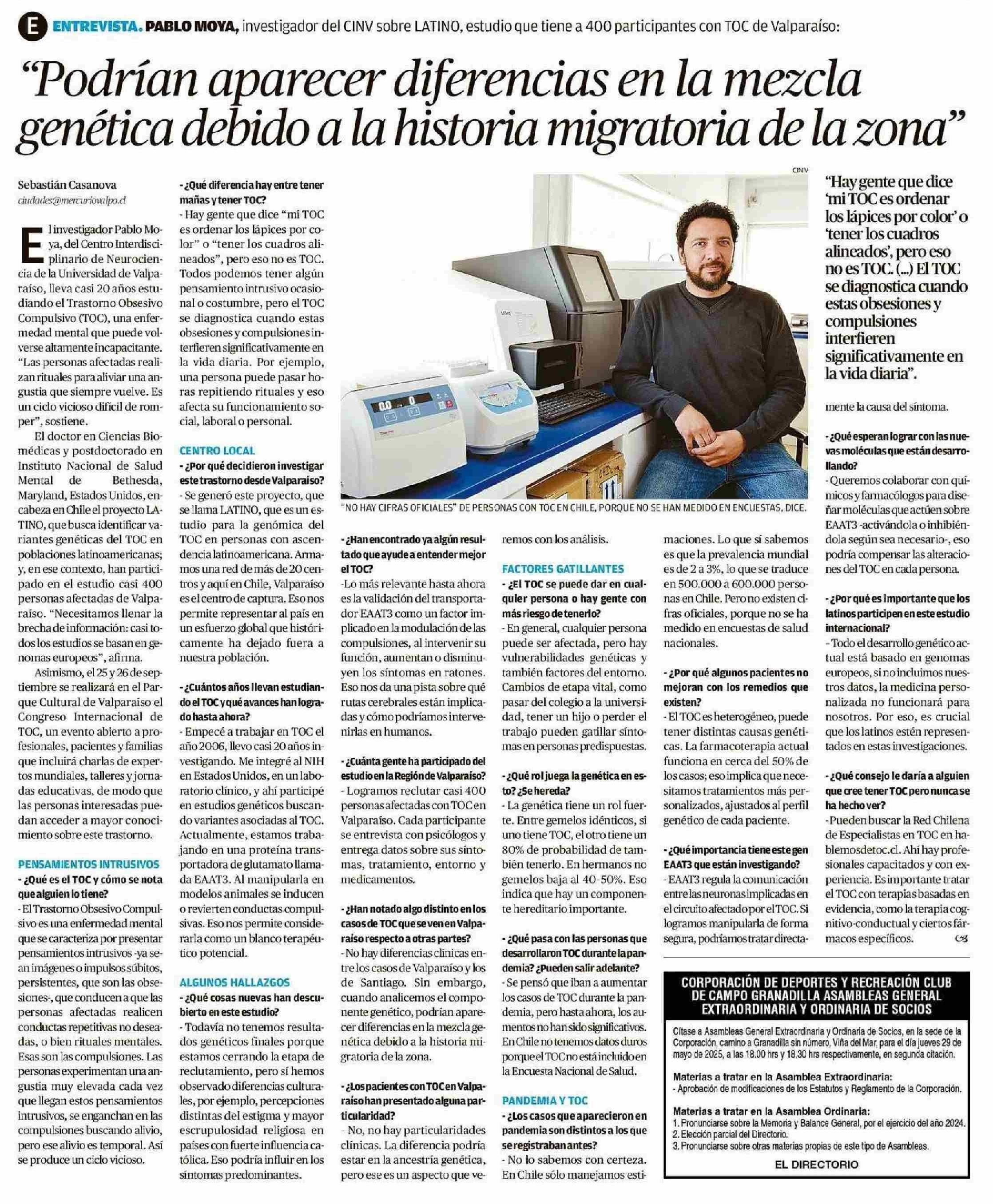 “Podrían aparecer diferencias en la mezcla genética debido a la historia migratoria de la zona” 19-05-2025 El Mercurio de Valparaíso |