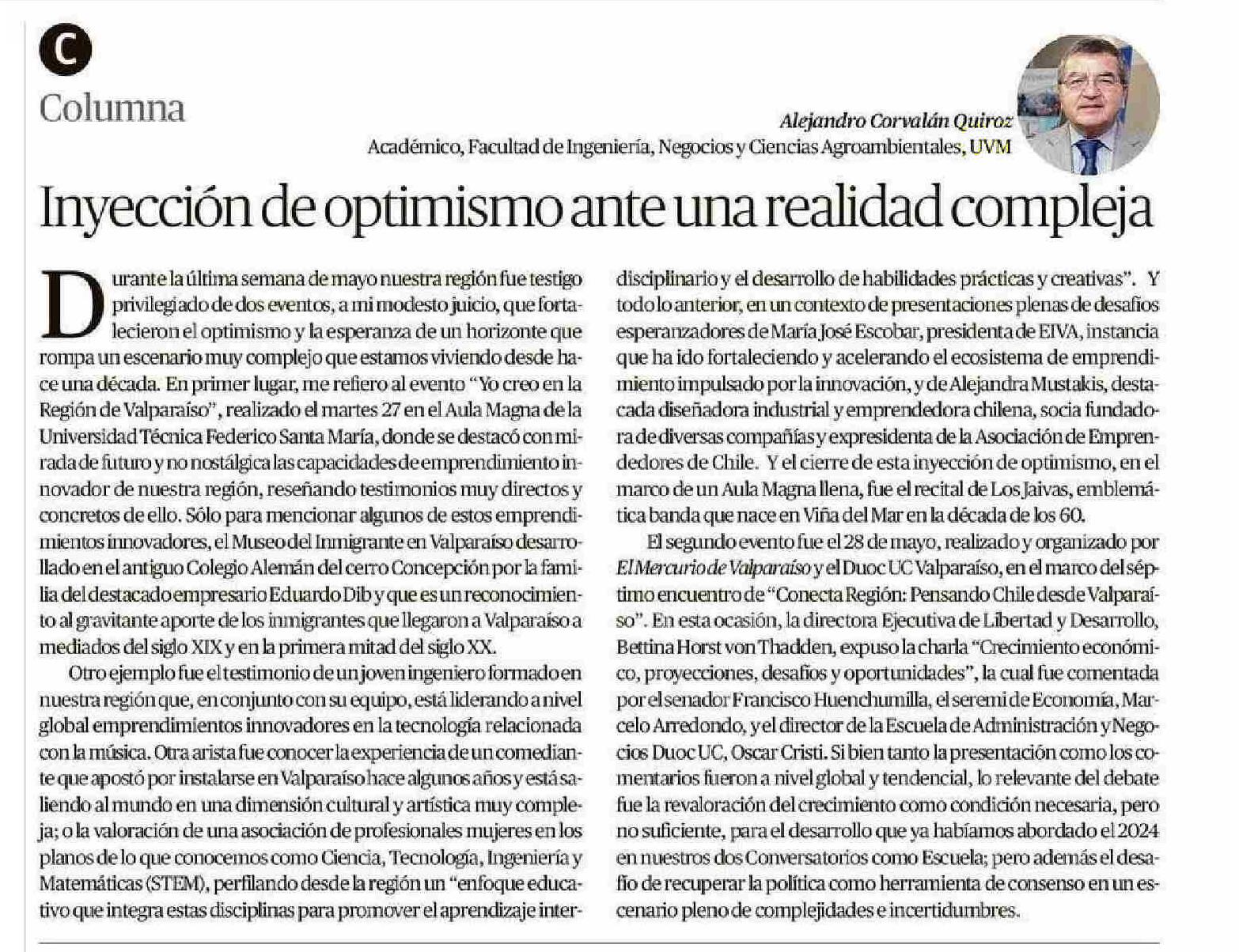 Inyección de optimismo ante una realidad compleja 04-06-2025 El Mercurio de Valparaíso |