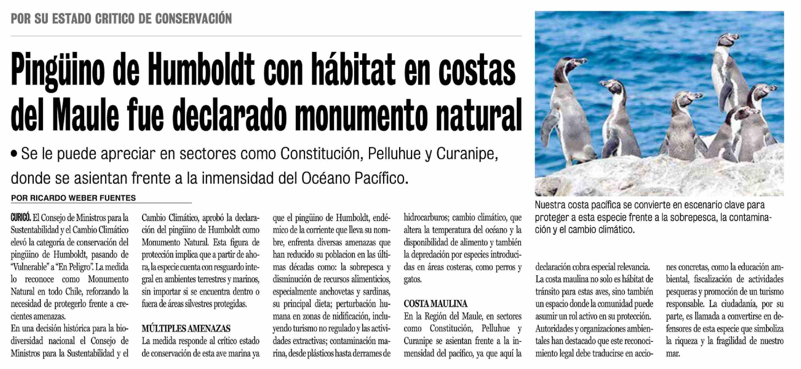 Título: Pingüino de Humboldt con hábitat en costas del Maule fue declarado monumento natural