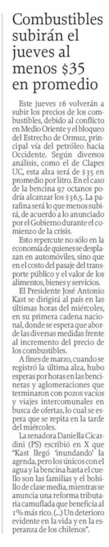 Título: Combustibles subirán el jueves al menos $35 en promedio