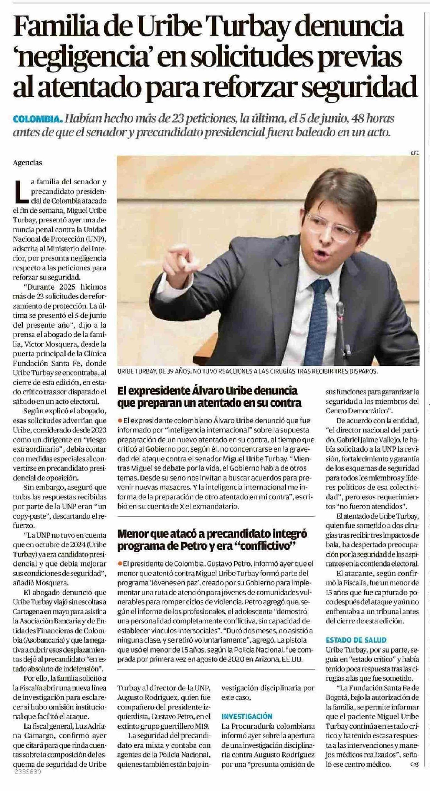 Título: Familia de Uribe Turbay denuncia 'negligencia' en solicitudes previas al atentado para reforzar seguridad