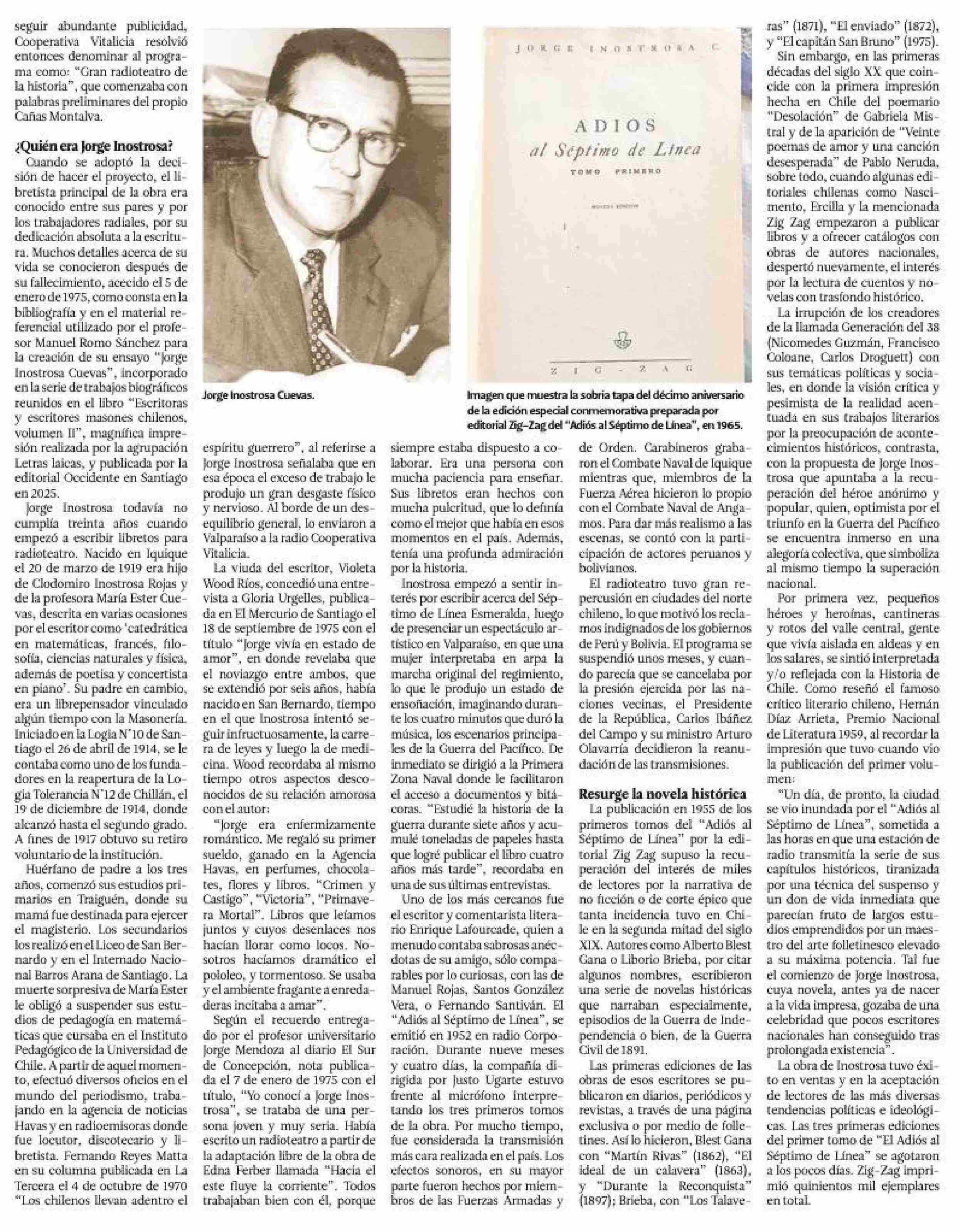Título: Recuerdo de Jorge Inostrosa y de su “Adiós al Séptimo de Línea”