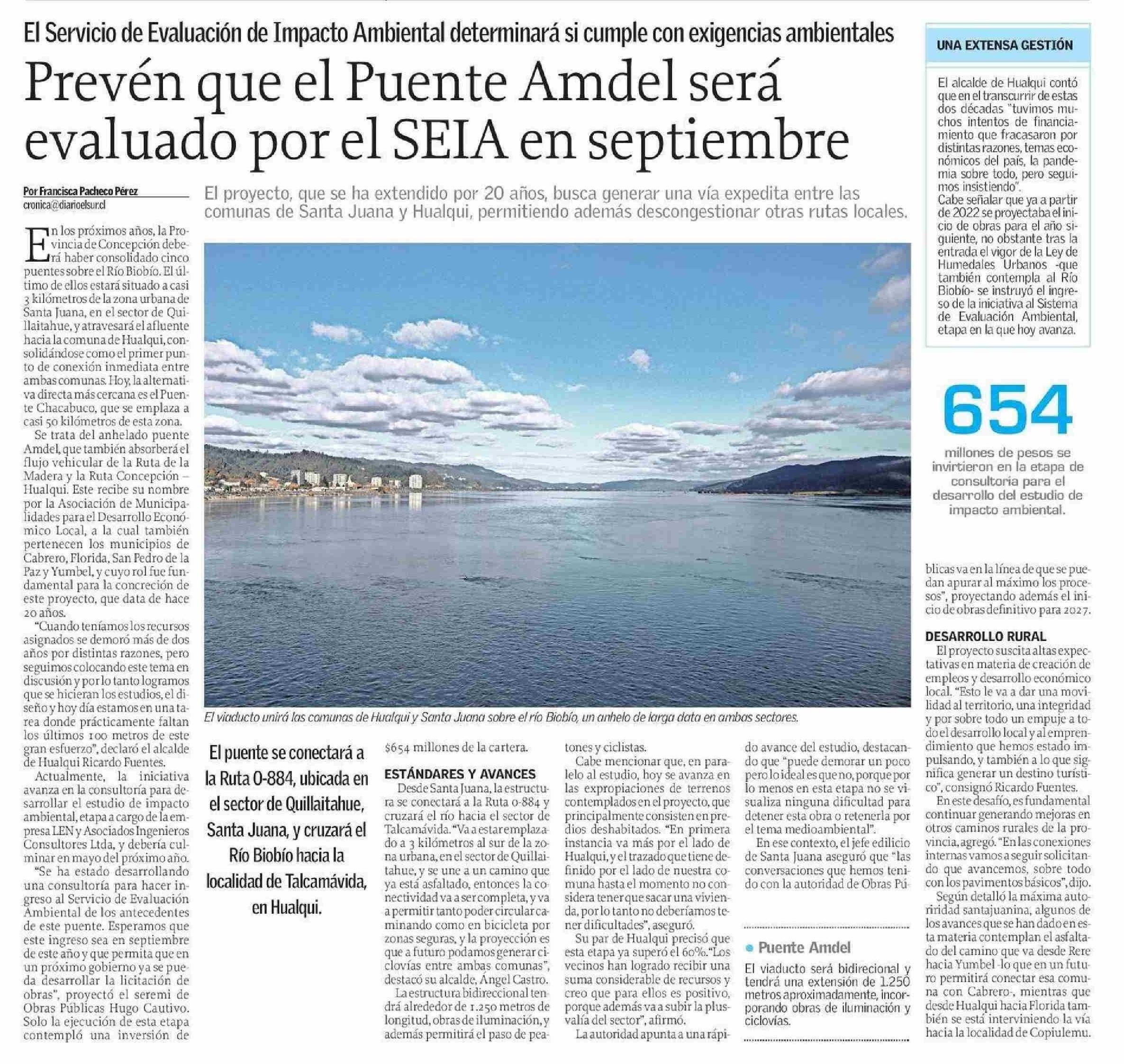 Prevén que el Puente Amdel será evaluado por el SEIA en septiembre 02-06-2025 El Sur |