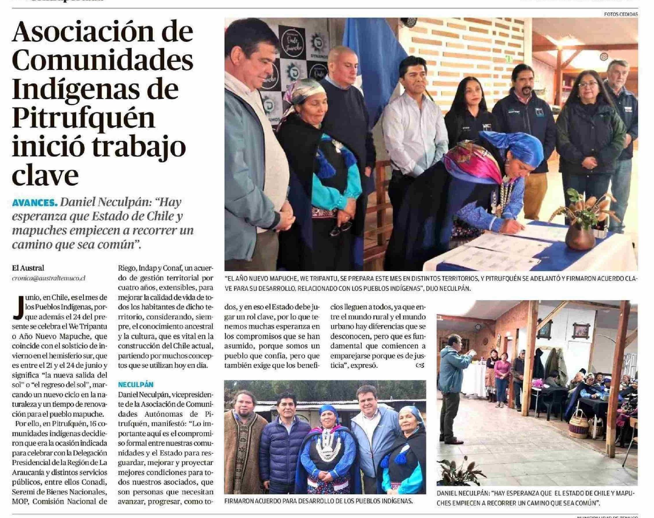 Asociación de Indígenas de inició trabajo Pitrufquén Comunidades clave 17-06-2025 El Austral de la Araucanía |
