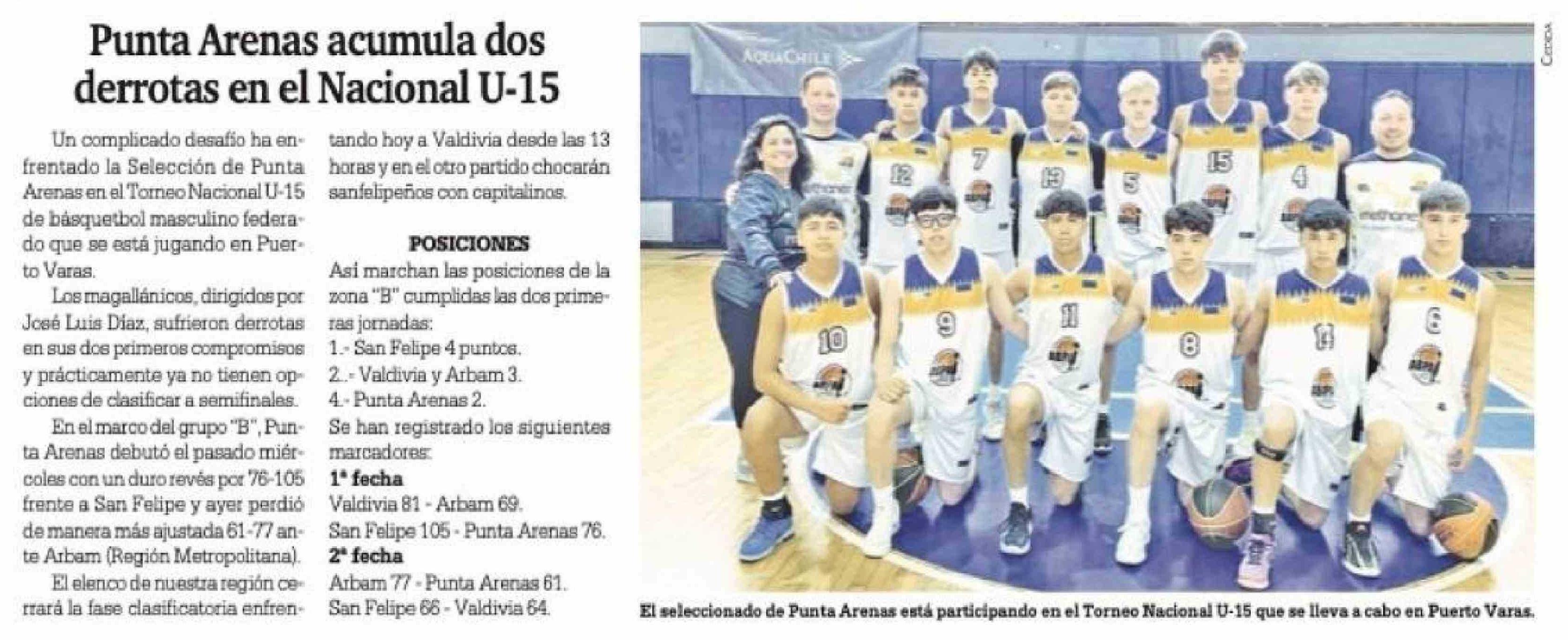 | Título: | Punta Arenas acumula dos derrotas en el Nacional U-15 |
