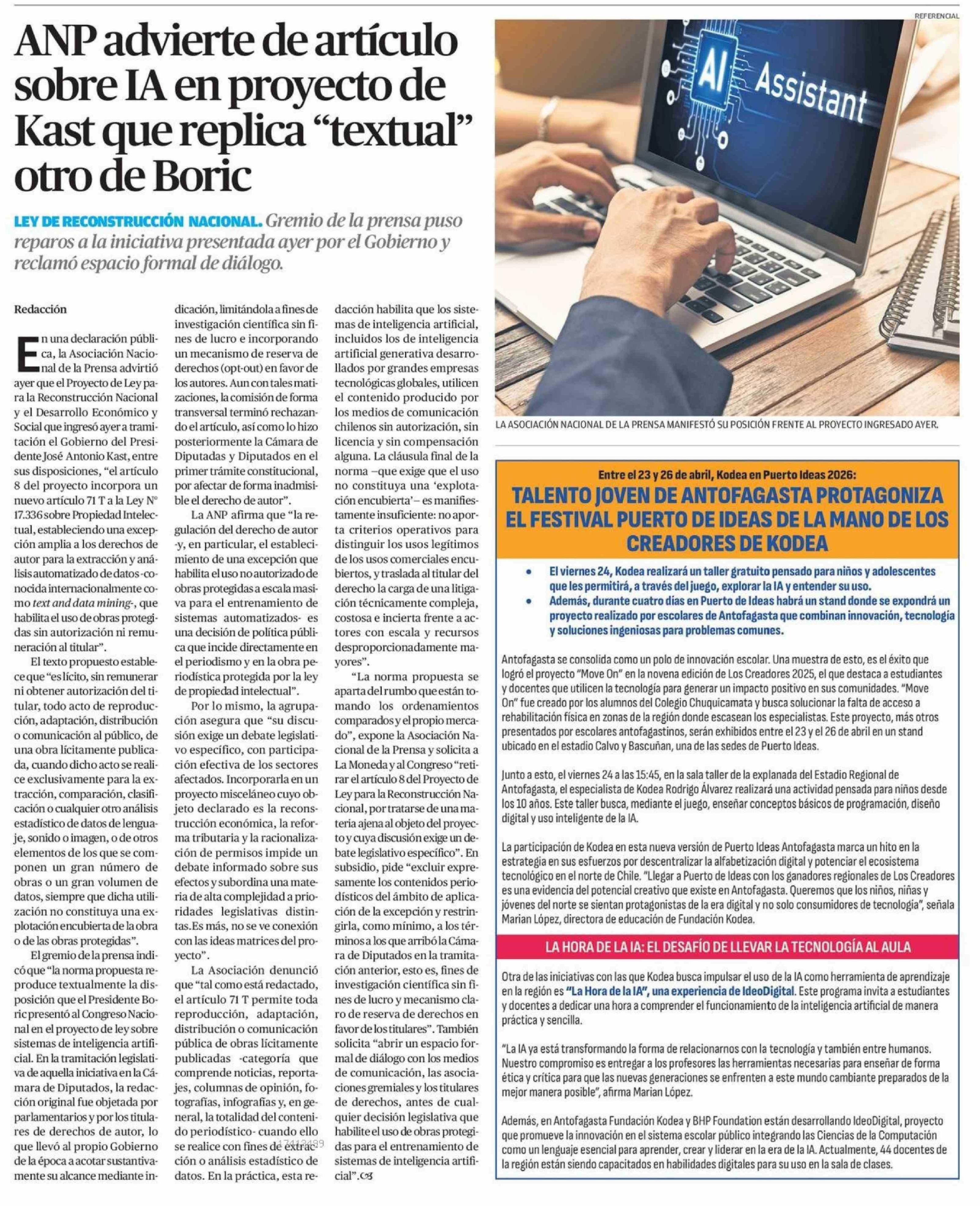 Título: ANP advierte de artículo sobre IA en proyecto de Kast que replica "textual" otro de Boric