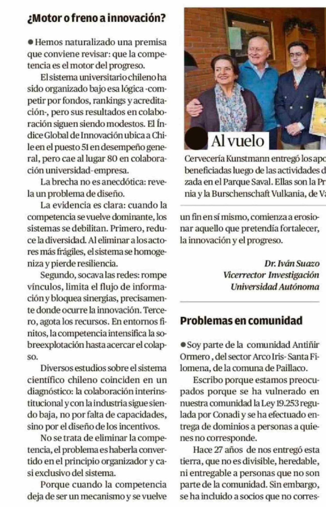 CARTAS: ¿Motor o freno a innovación? 18-04-2026 Diario Austral Región de Los Ríos |