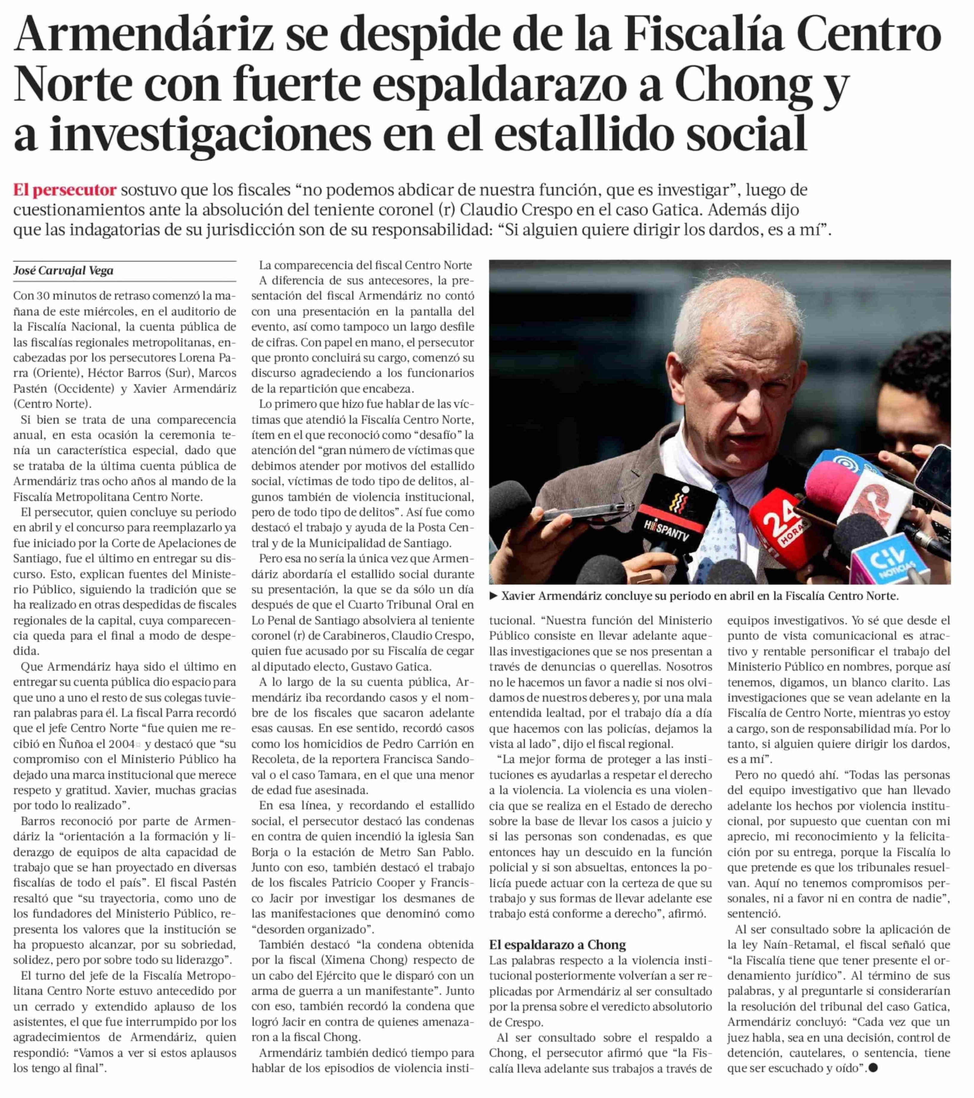 Título: Armendáriz se despide de la Fiscalía Centro Norte con fuerte espaldarazo a Chong y a investigaciones en el estallido social