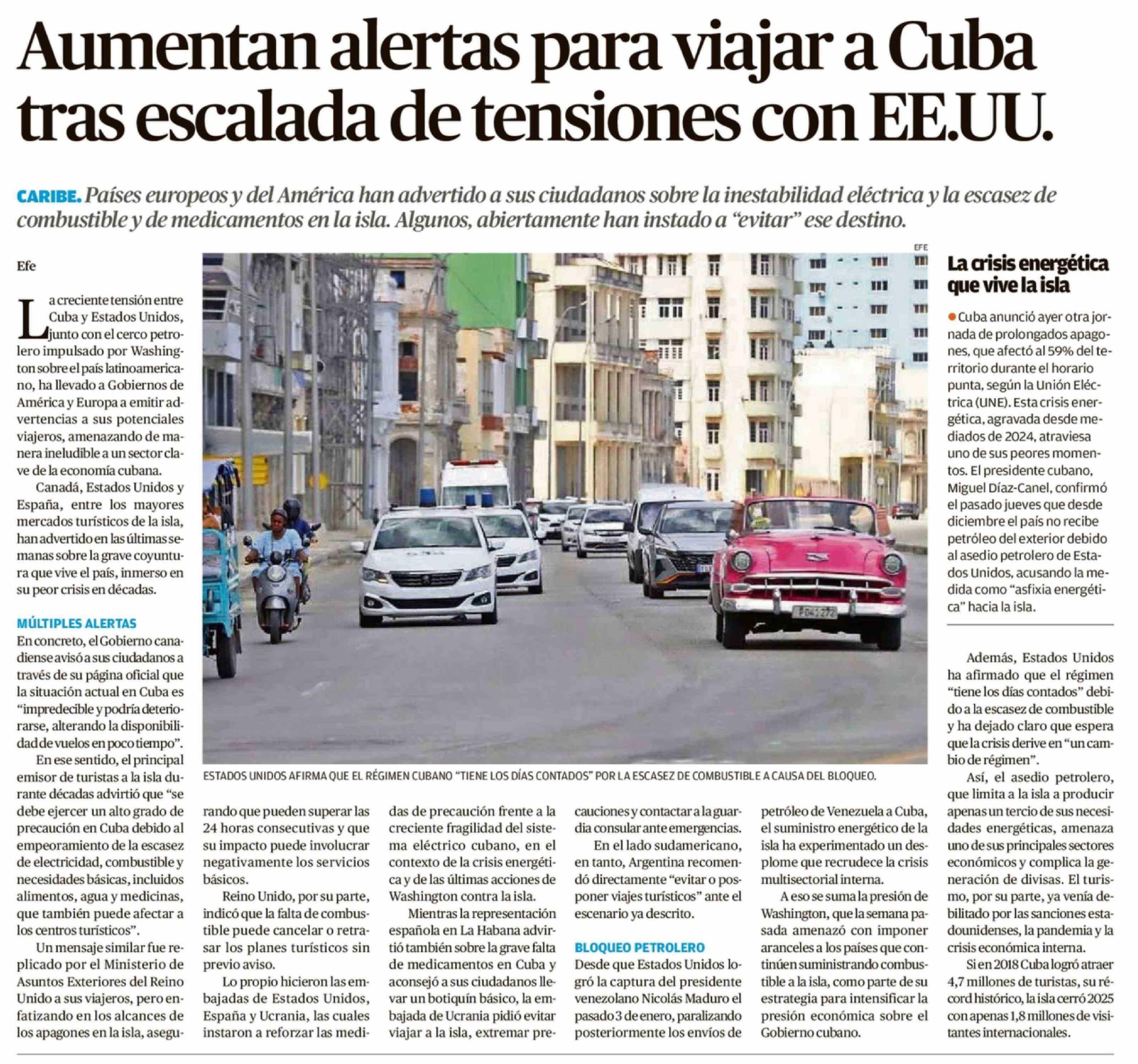 Título: Aumentan alertas para viajar a Cuba tras escalada de tensiones con EE.UU.