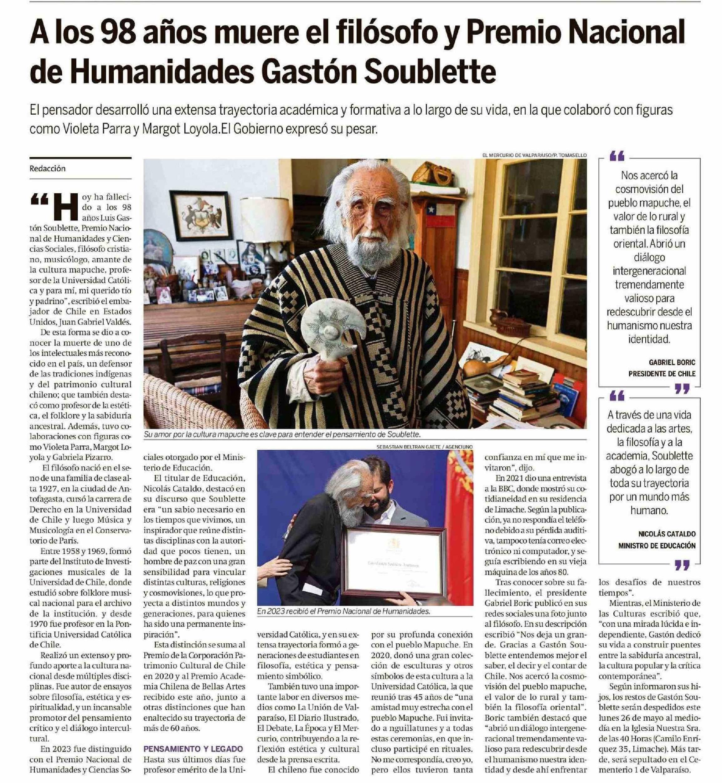 | Título: | A los 98 años muere el filósofo y Premio Nacional de Humanidades Gastón Soublette |