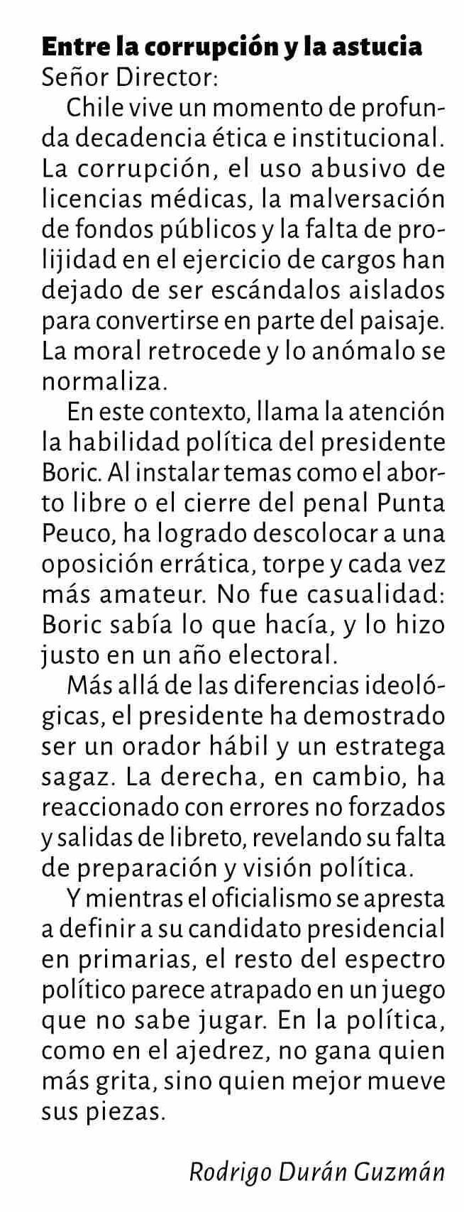 CARTAS: Entre la corrupción y la astucia 04-06-2025 La Discusión |