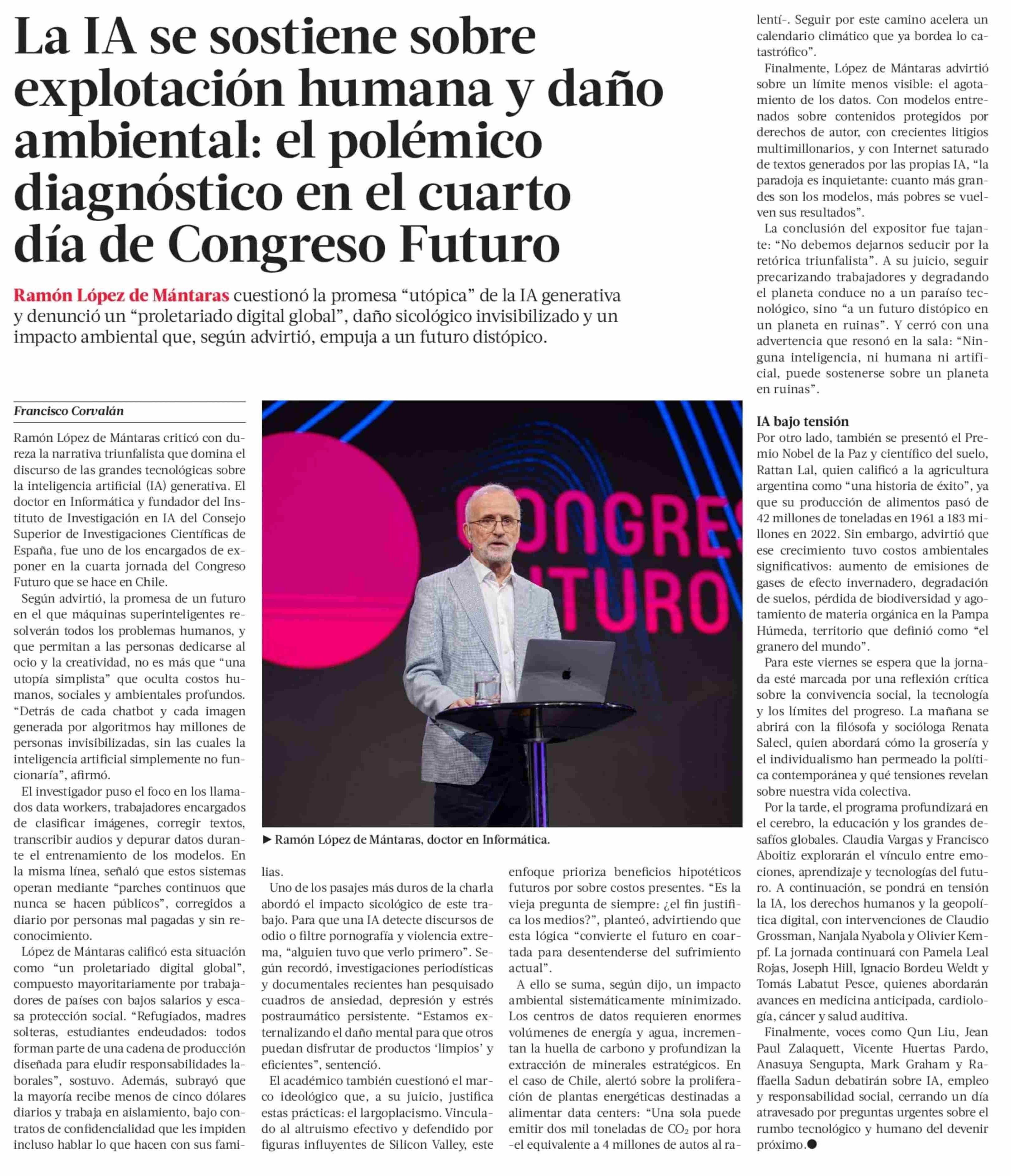 Título: La IA se sostiene sobre explotación humana y daño ambiental: el polémico diagnóstico en el cuarto día de Congreso Futuro