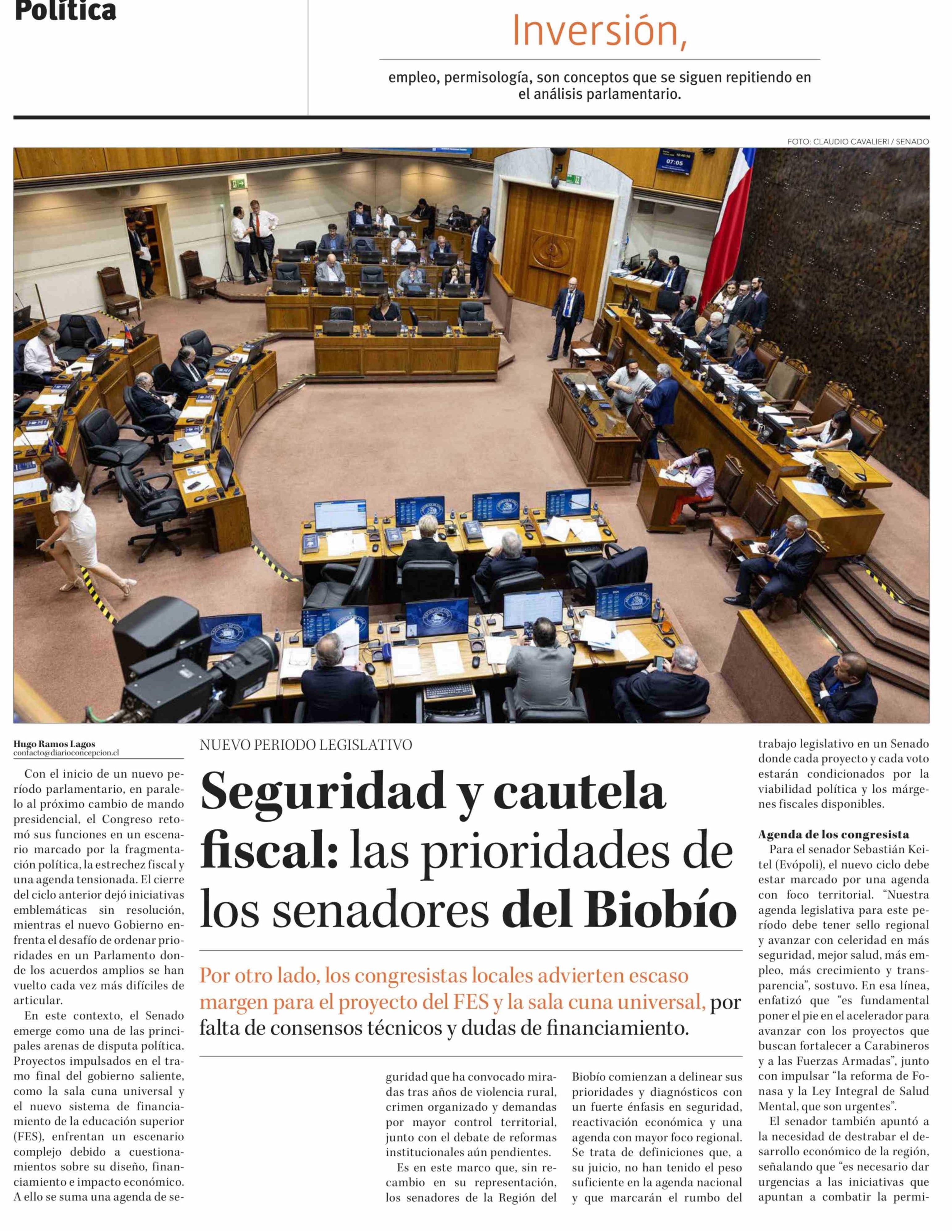 Título: Seguridad y cautela fiscal: las prioridades de los senadores del Biobío