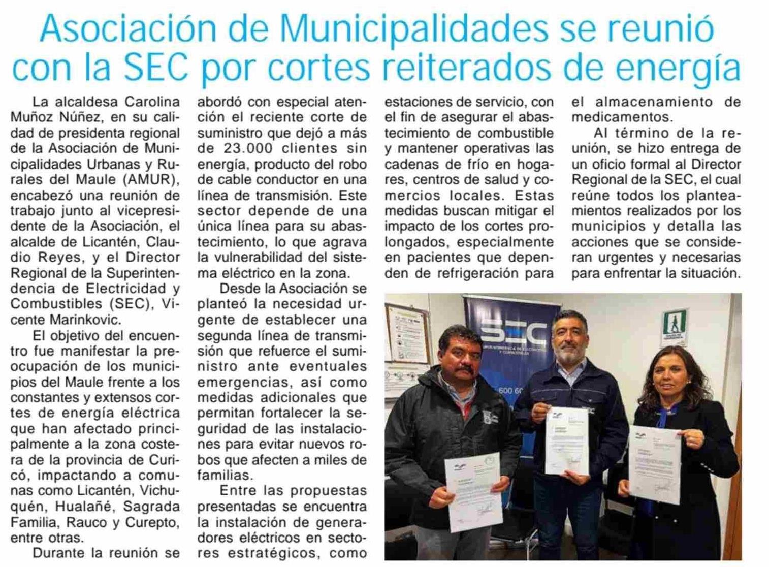 Asociación de Municipalidades se reunió con la SEC por cortes reiterados de energía 15-06-2025 Maule Hoy |