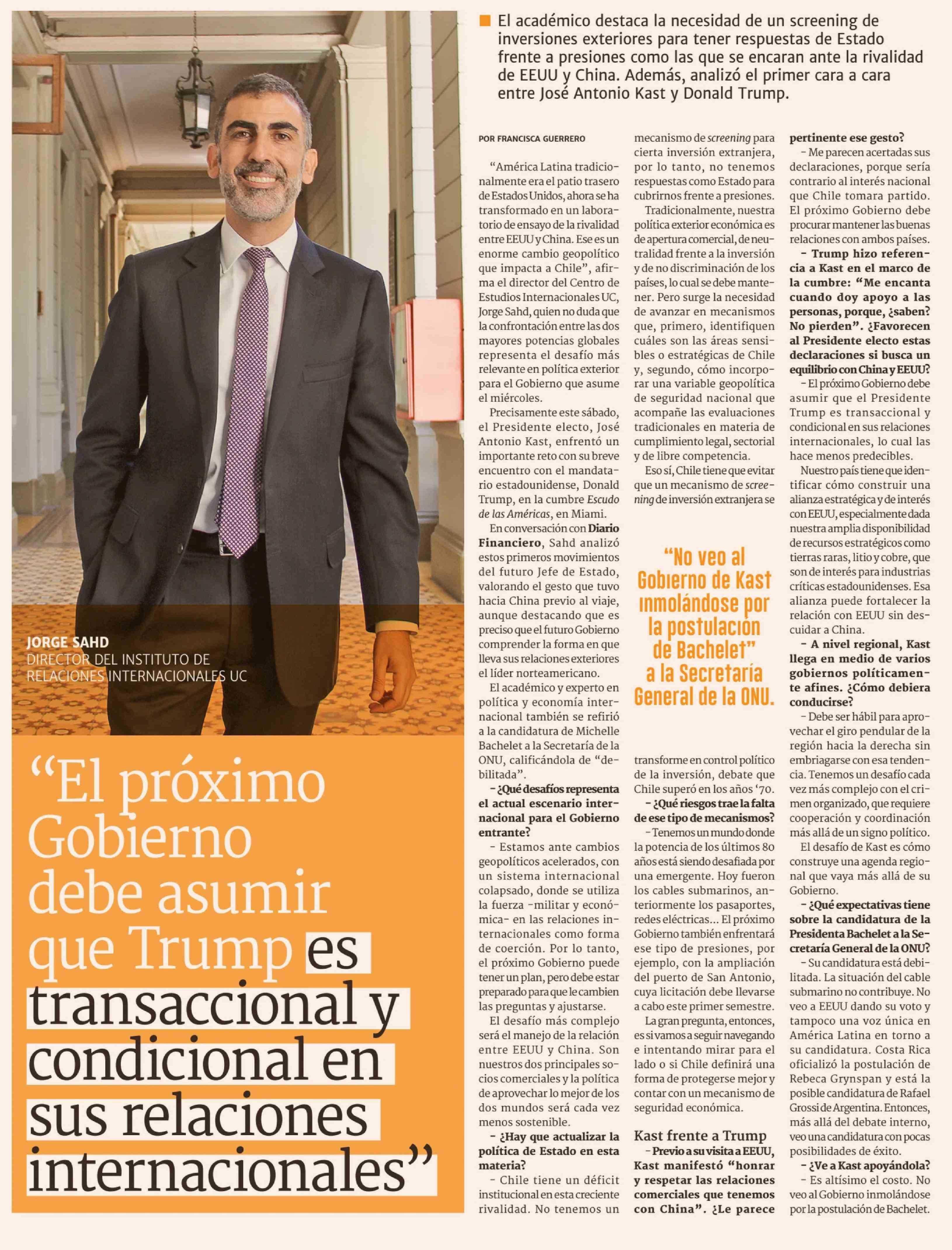 Título: "El próximo Gobierno debe asumir que Trump es transaccional y condicional en sus relaciones internacionales"