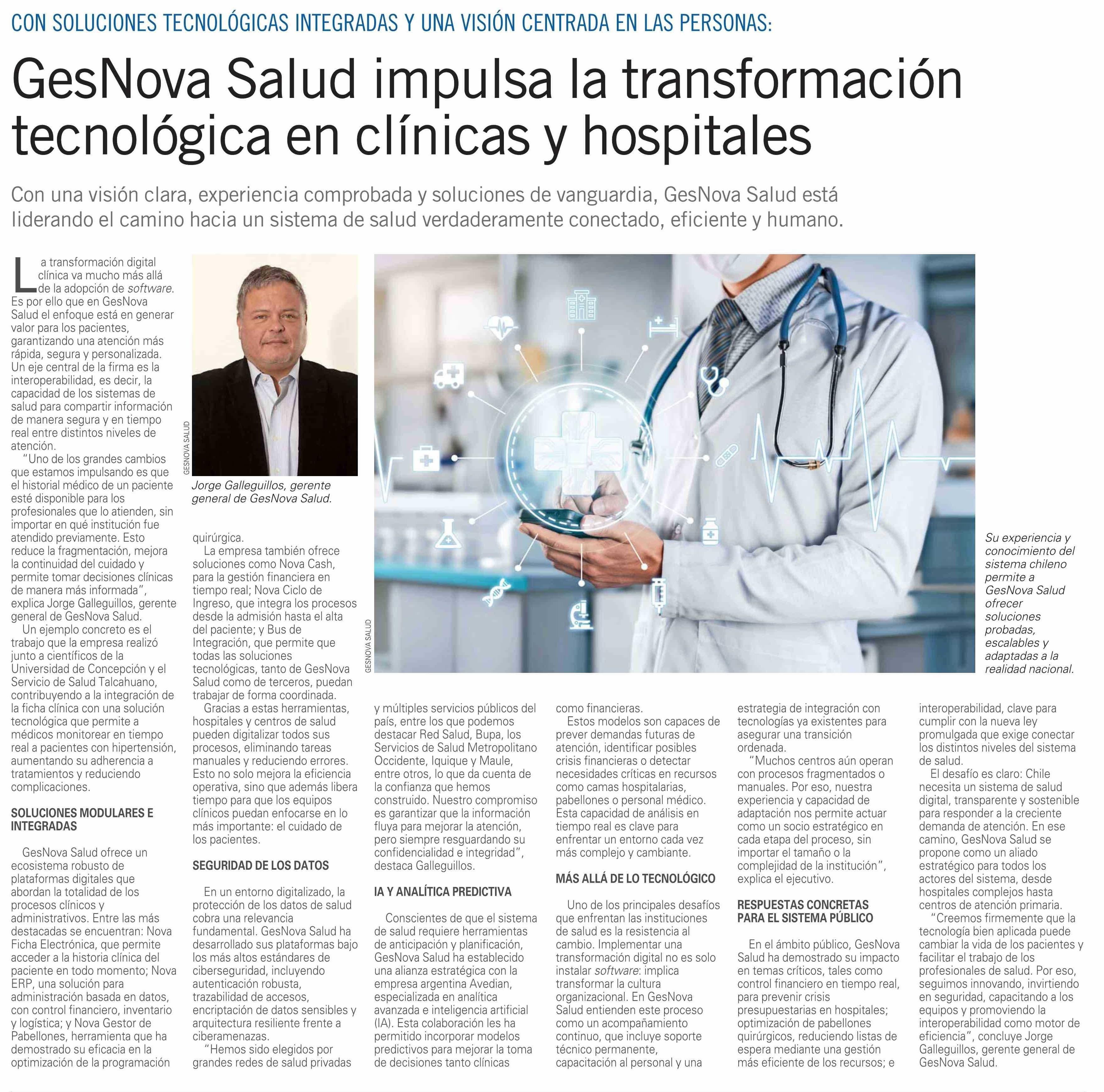 GesNova Salud impulsa la transformación tecnológica en clínicas y hospitales 26-05-2025 El Mercurio |