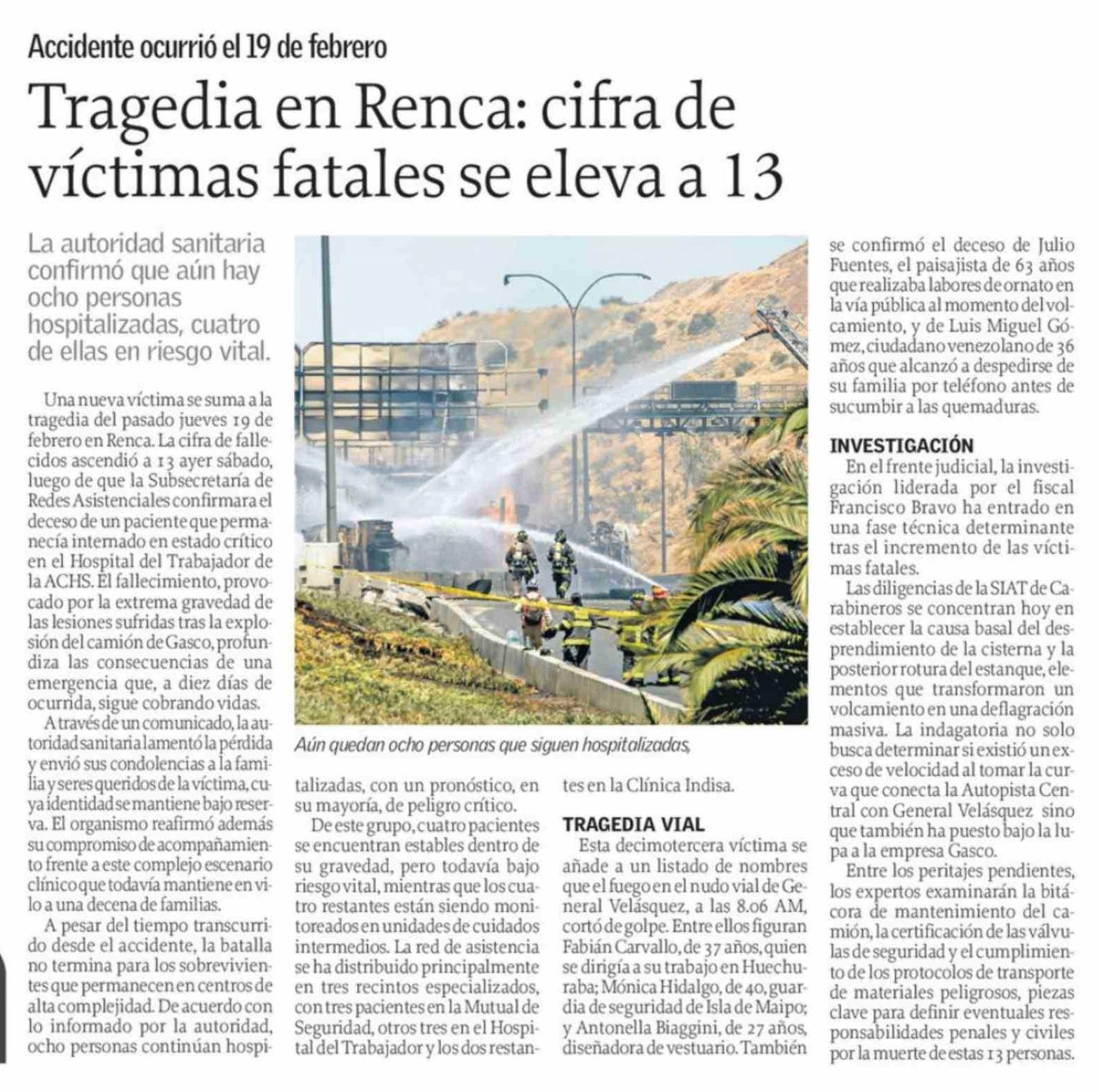 | Título: | Tragedia en Renca: cifra de víctimas fatales se eleva a 13 |