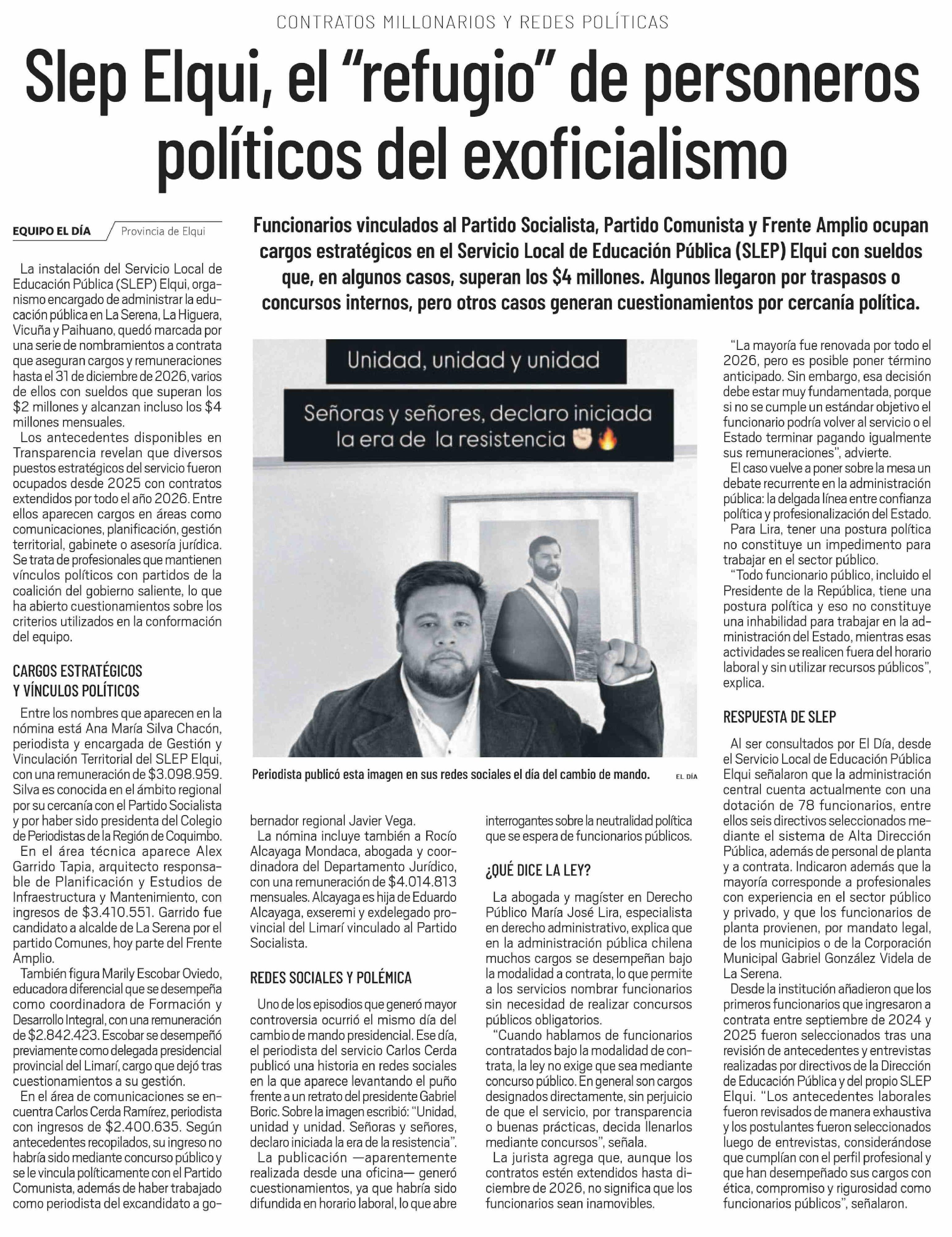 Slep Elqui, el "refugio" de personeros políticos del exoficialismo 17-03-2026 El Día |
